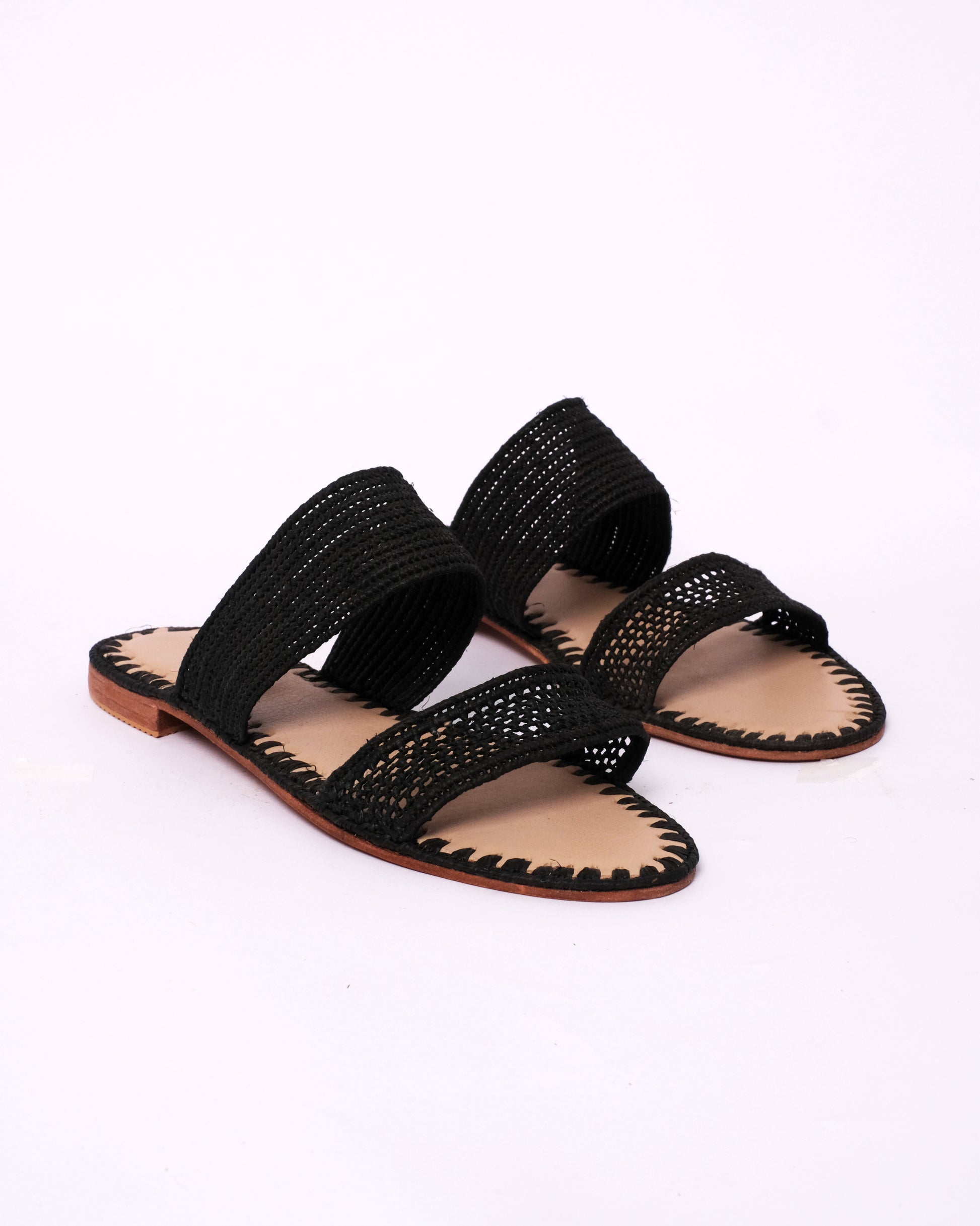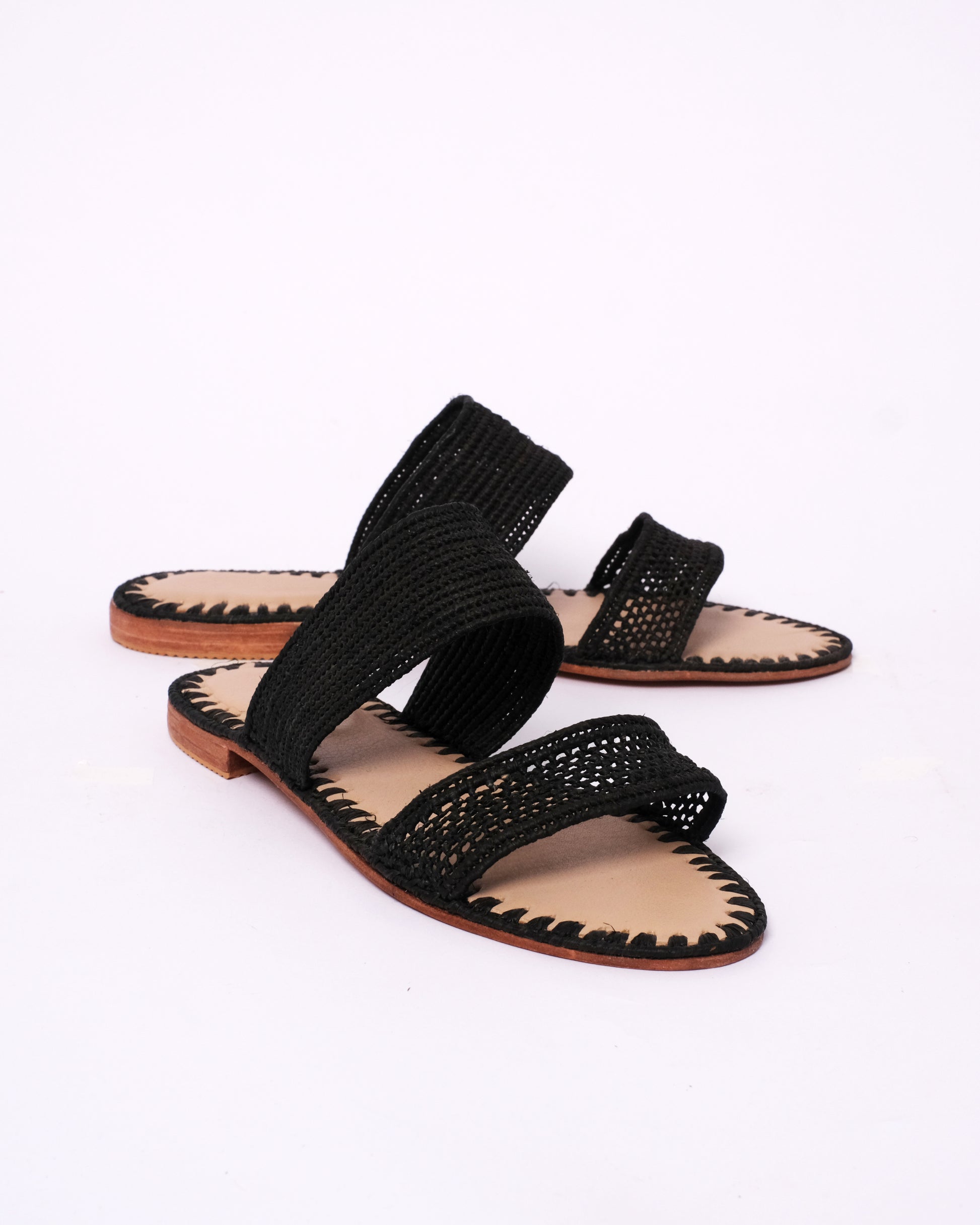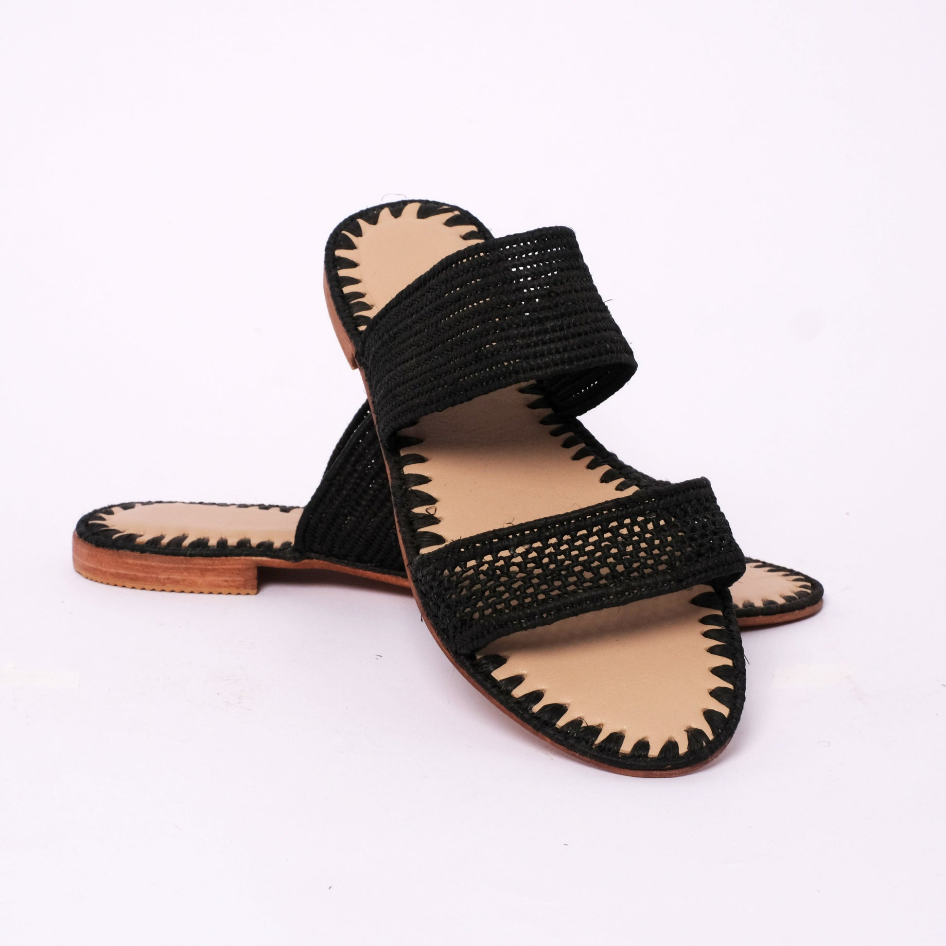 • Raffia Upper – Two handwoven straps in classic black