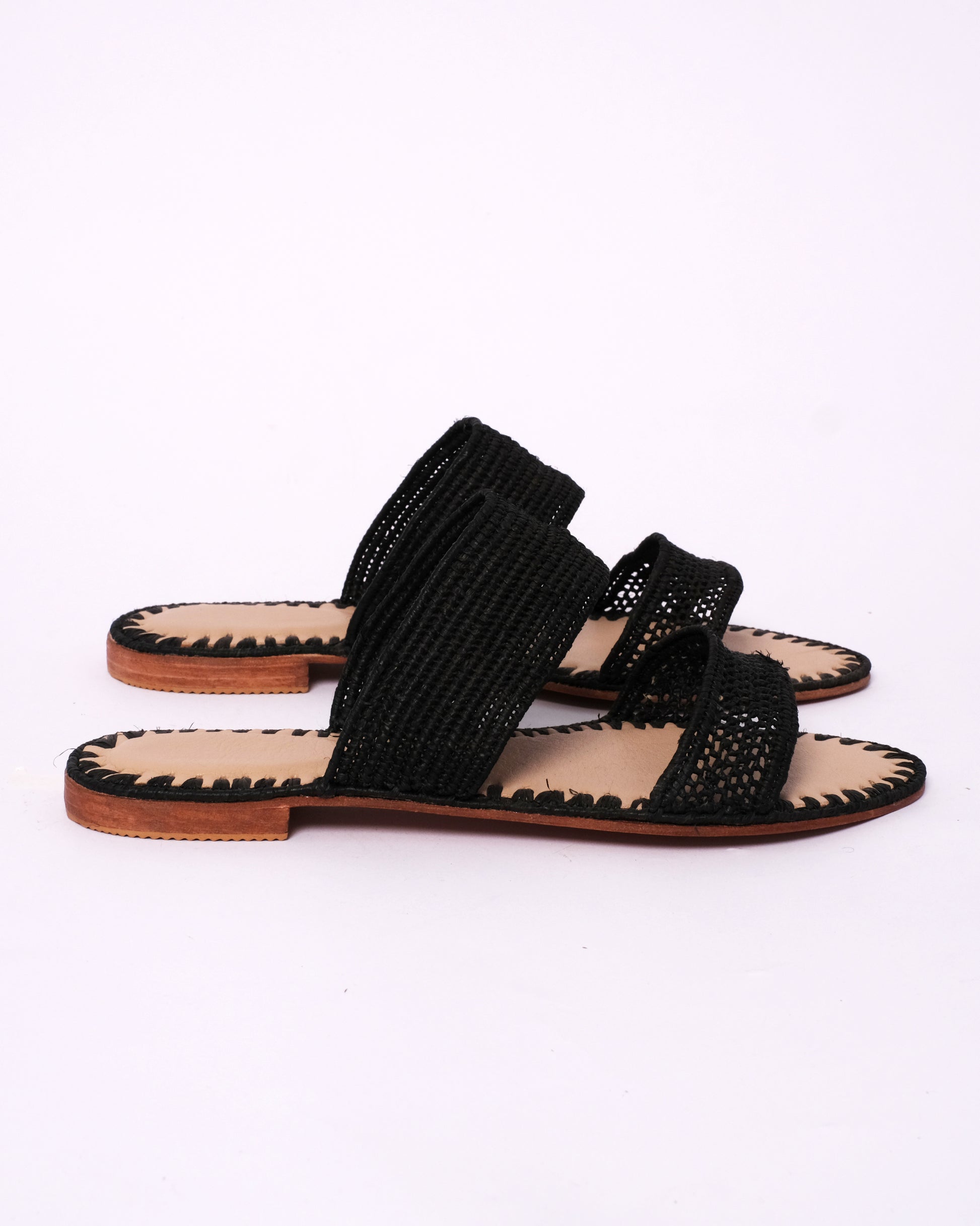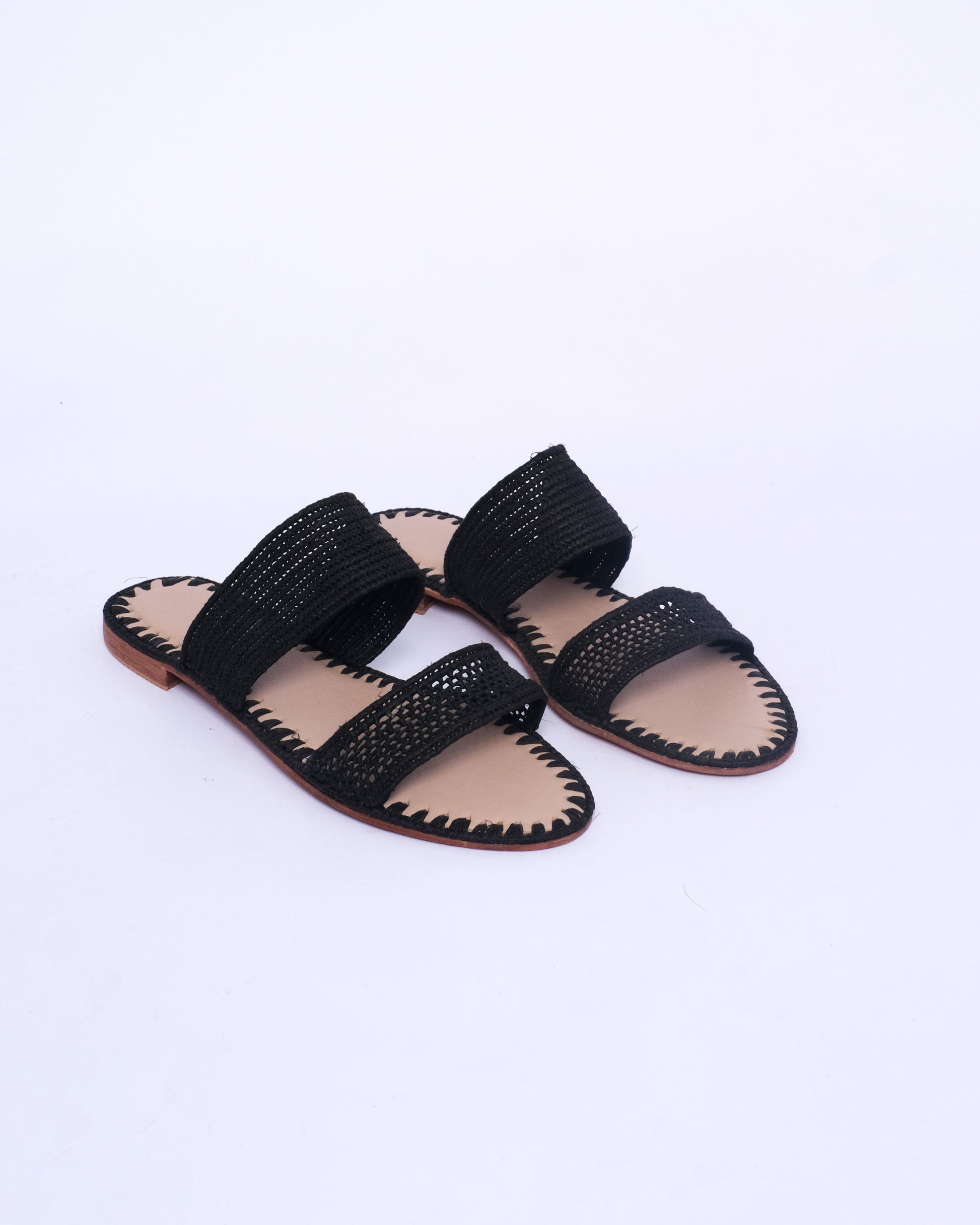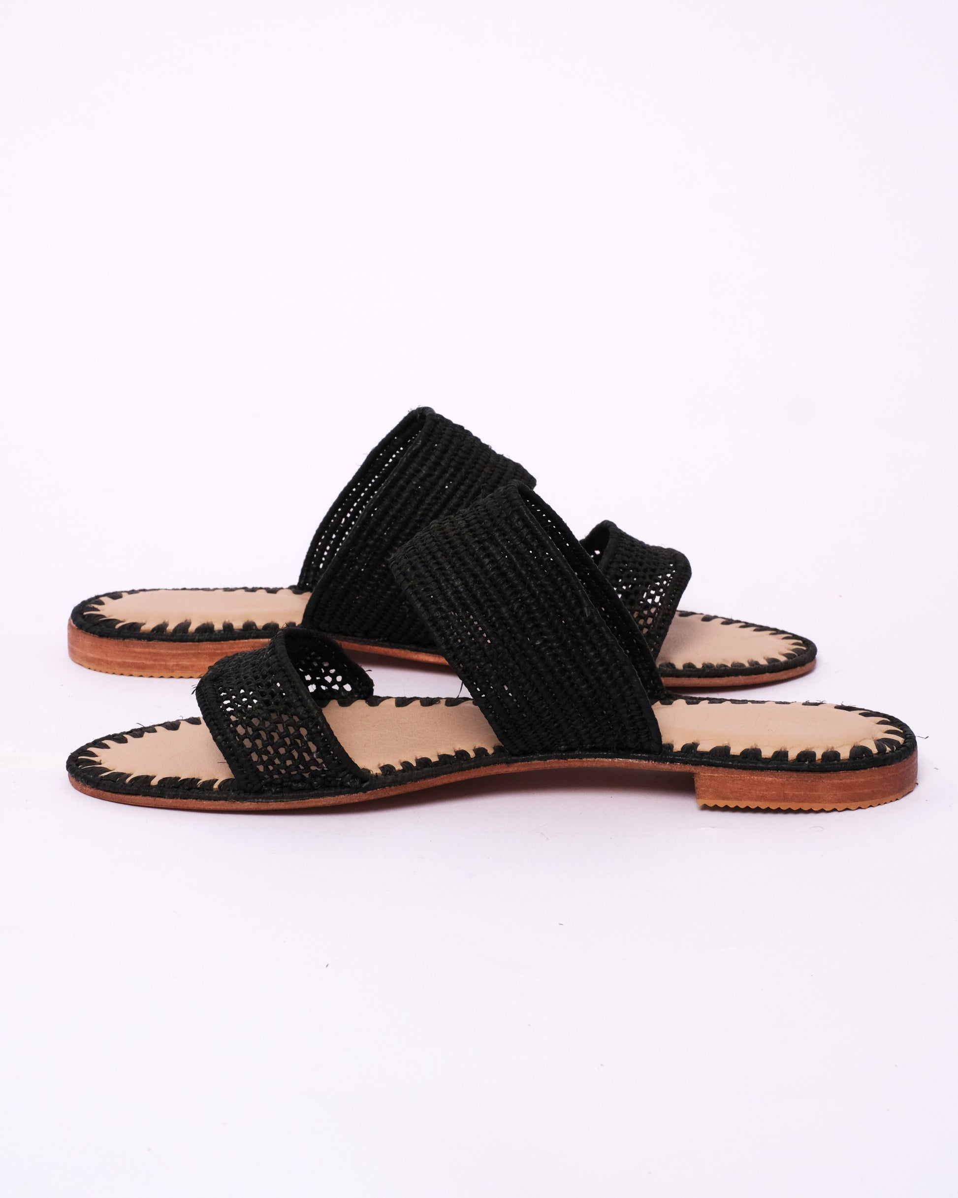 • Raffia Upper – Two handwoven straps in classic black