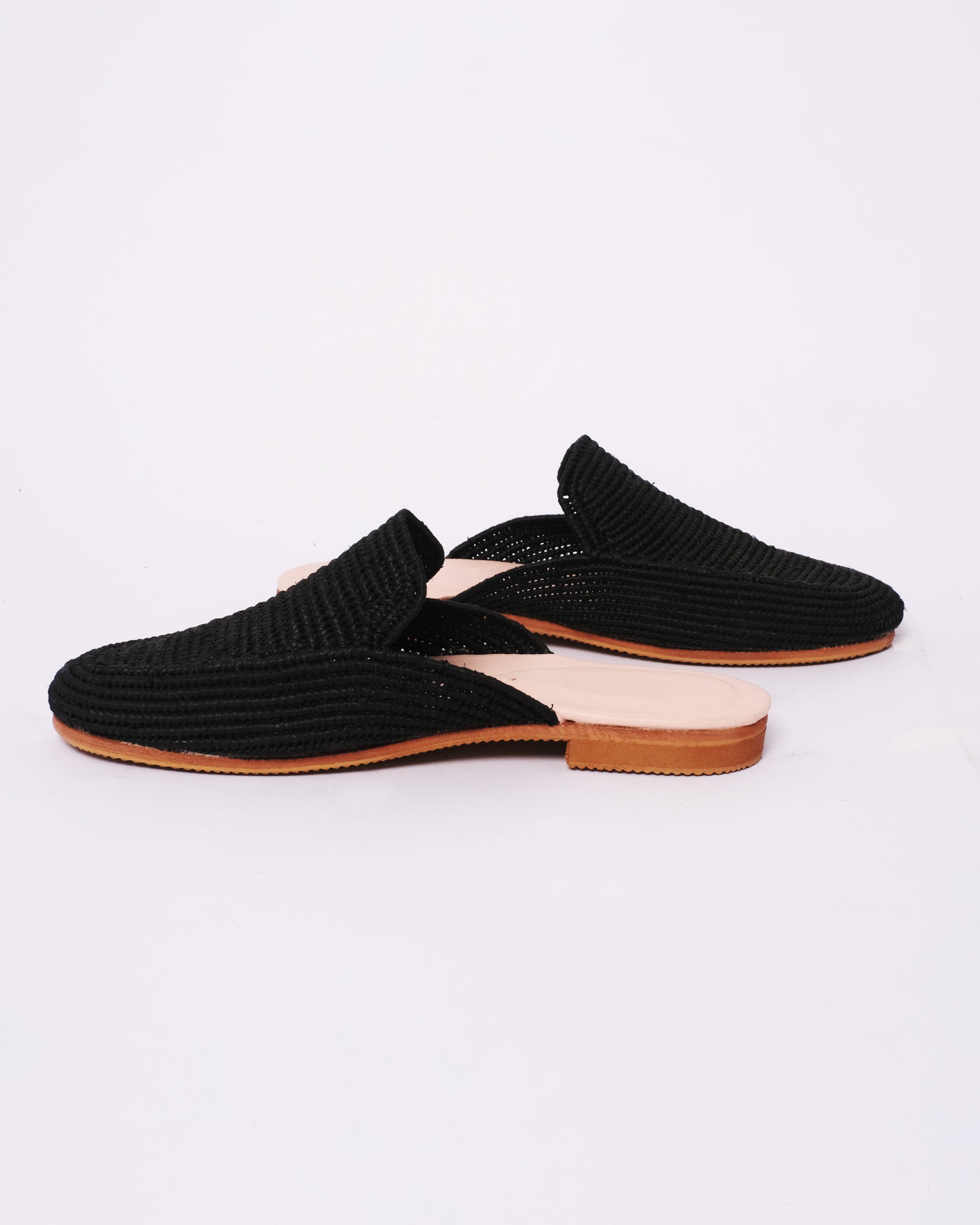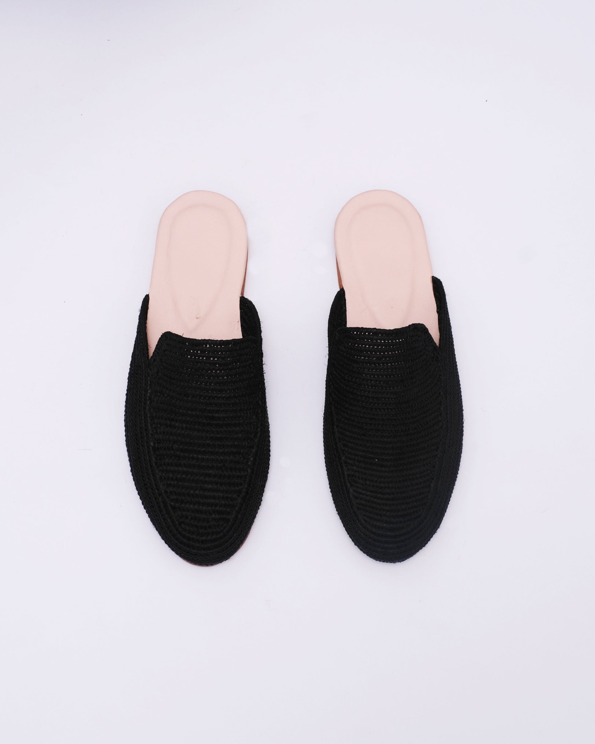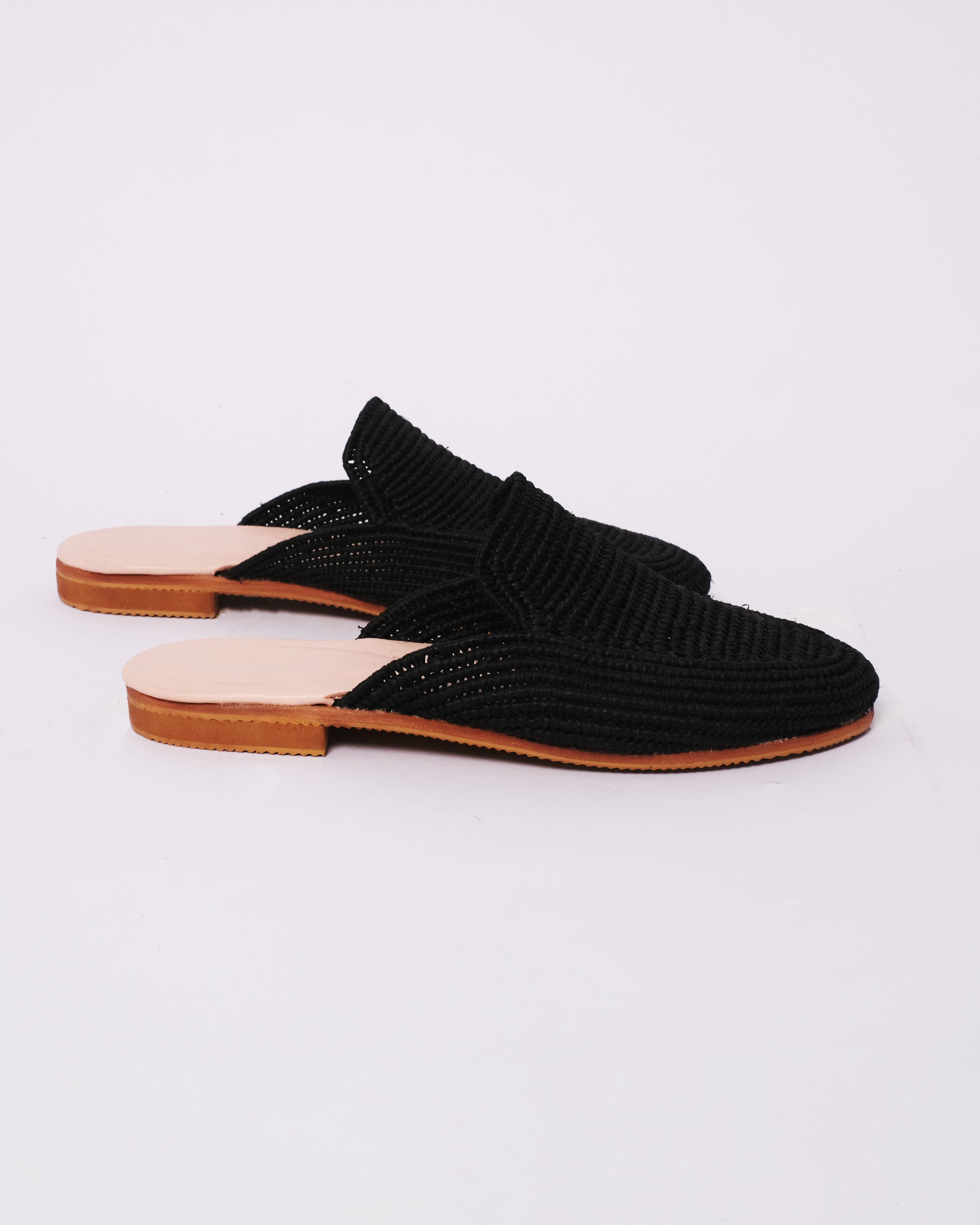 Minimalist, elegant, and built for comfort. These black raffia mules are handmade by Moroccan artisans using natural raffia and finished with a durable leather sole. Their clean silhouette, open back, and pointed toe make them a wardrobe essential that pairs effortlessly with everything from linen pants to maxi skirts.