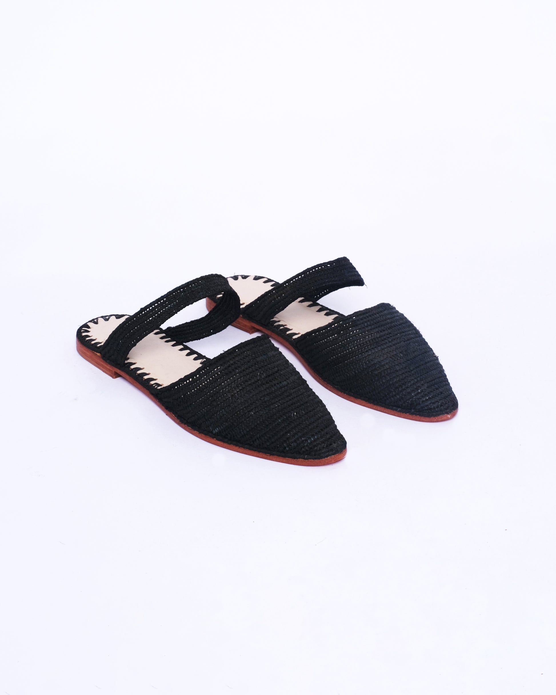 Simple, natural, and striking. These black raffia sandals are handwoven from natural fiber and finished with a secure ankle strap. Their elegant shape and subtle texture make them perfect for everyday wear, while the deep black raffia gives them a bold, grounded look.