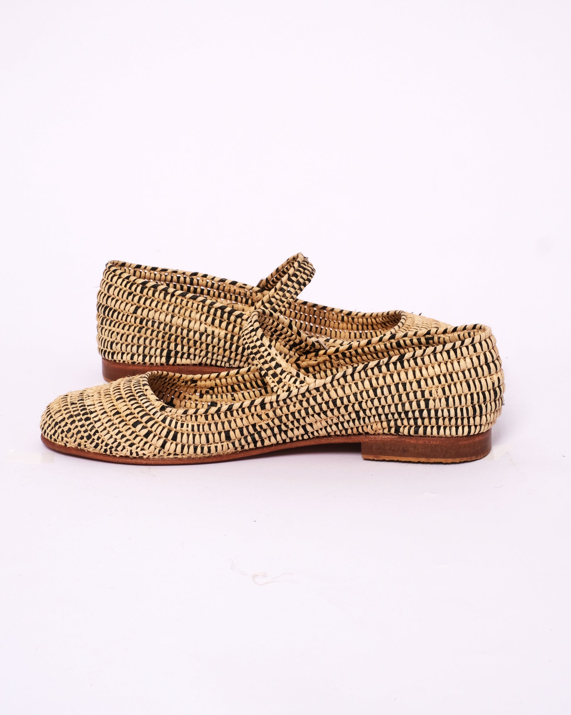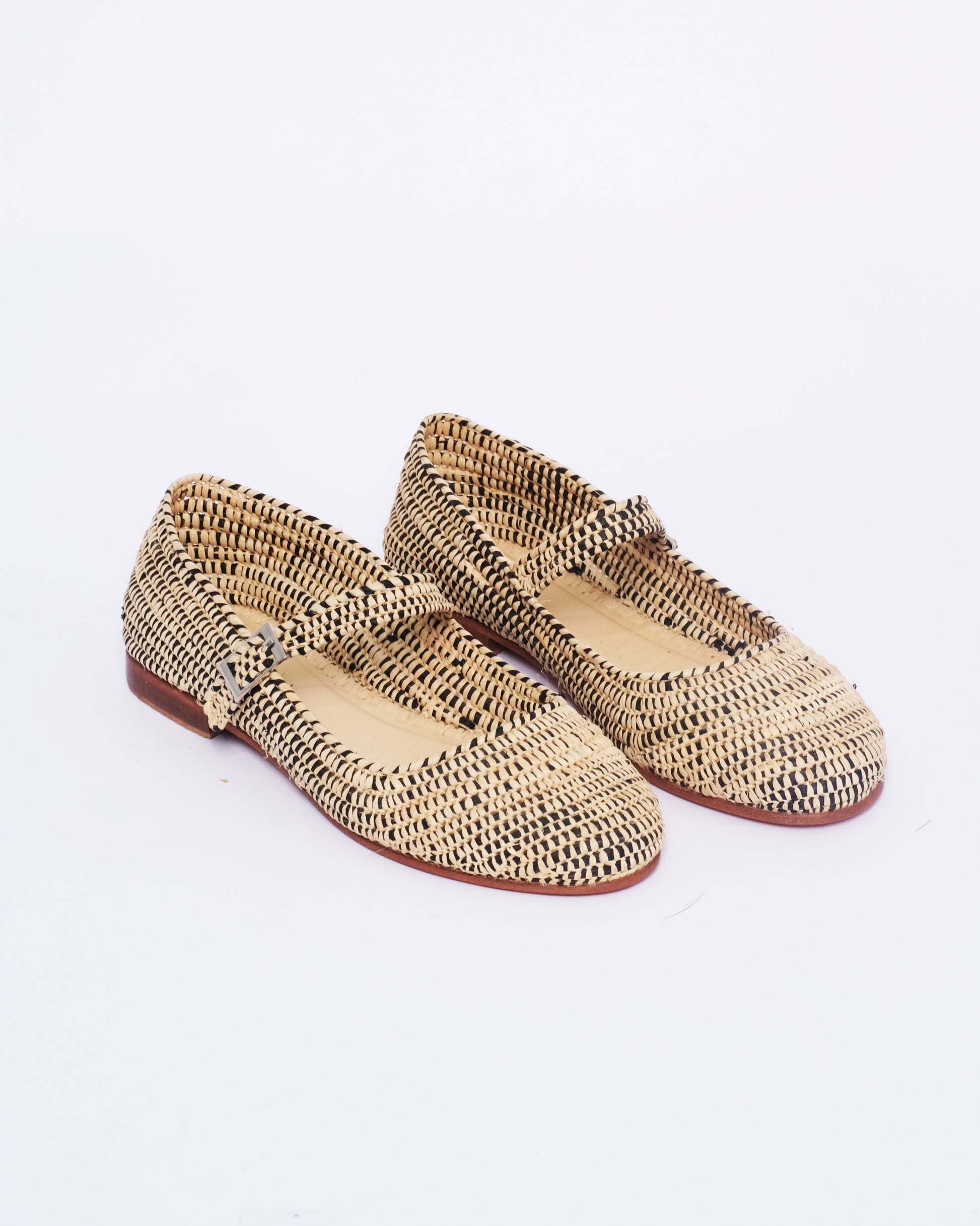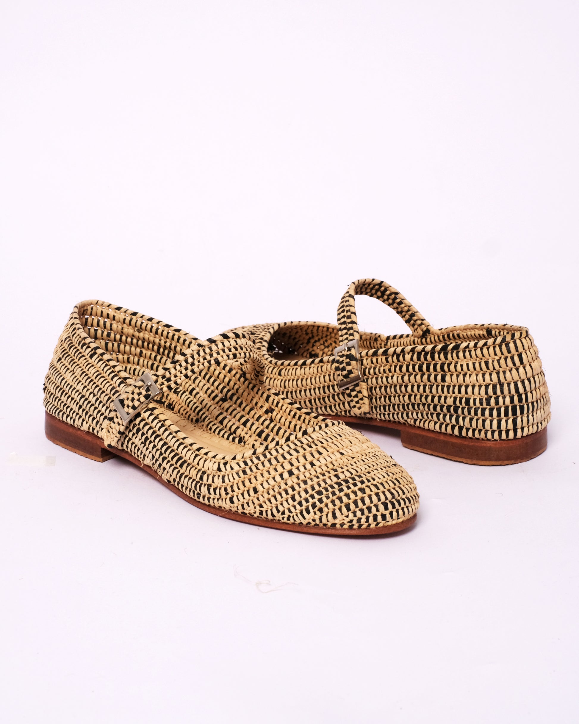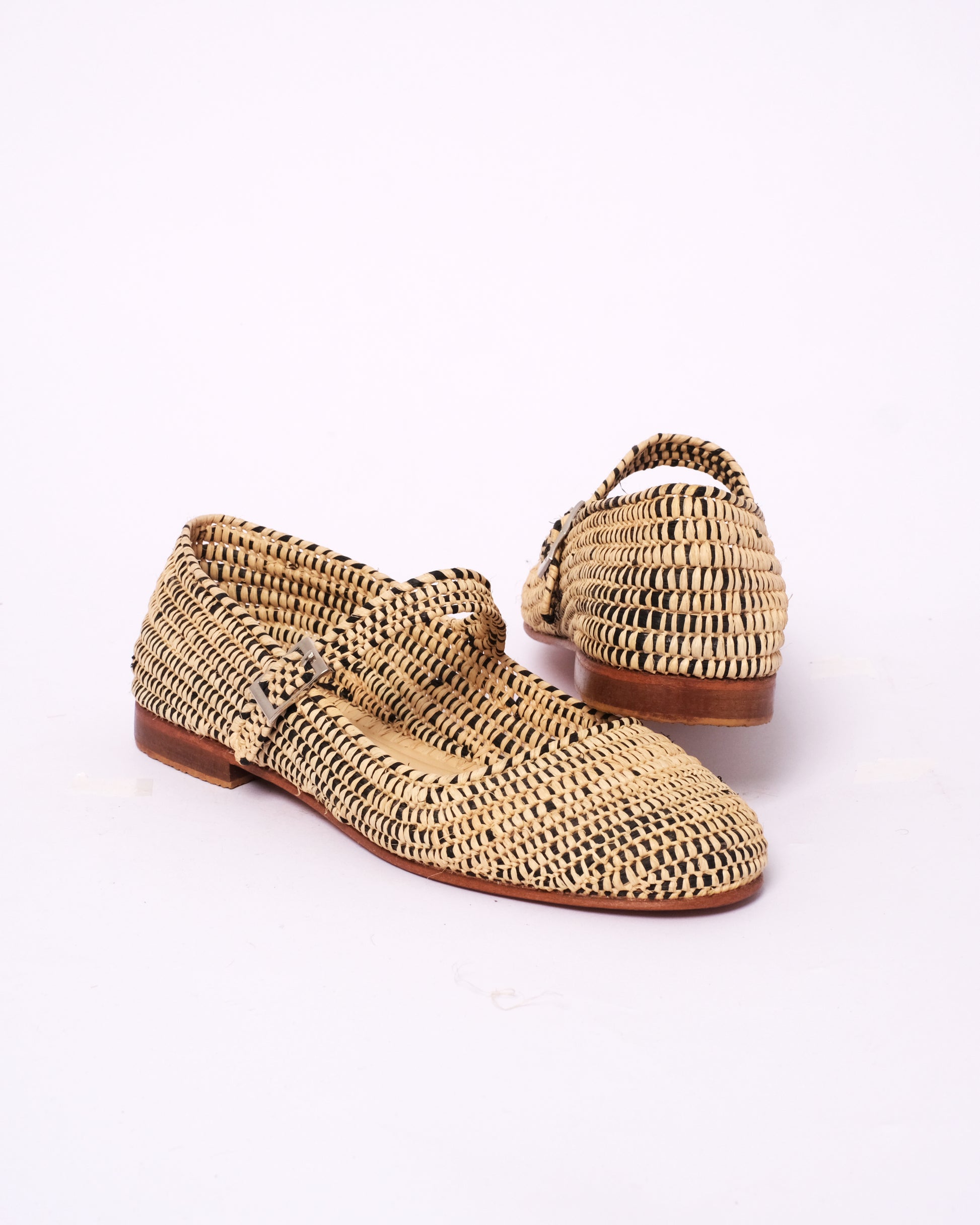 Two-Tone Raffia Mary Jane Flats – Handmade Moroccan Women’s Shoes