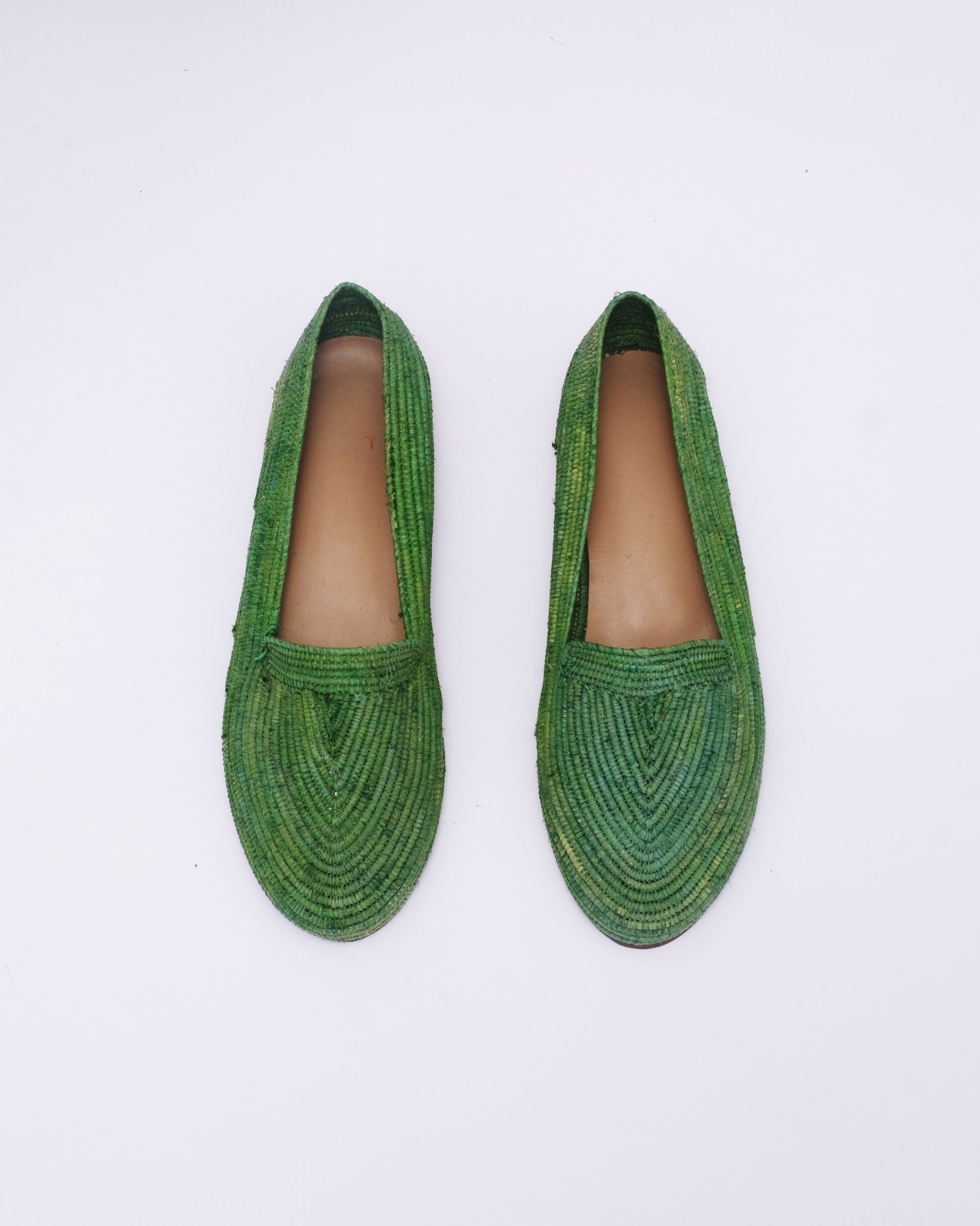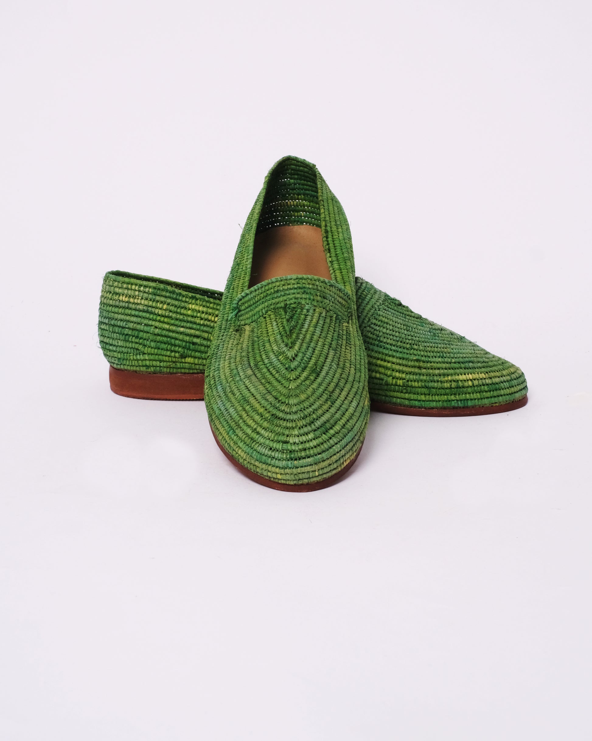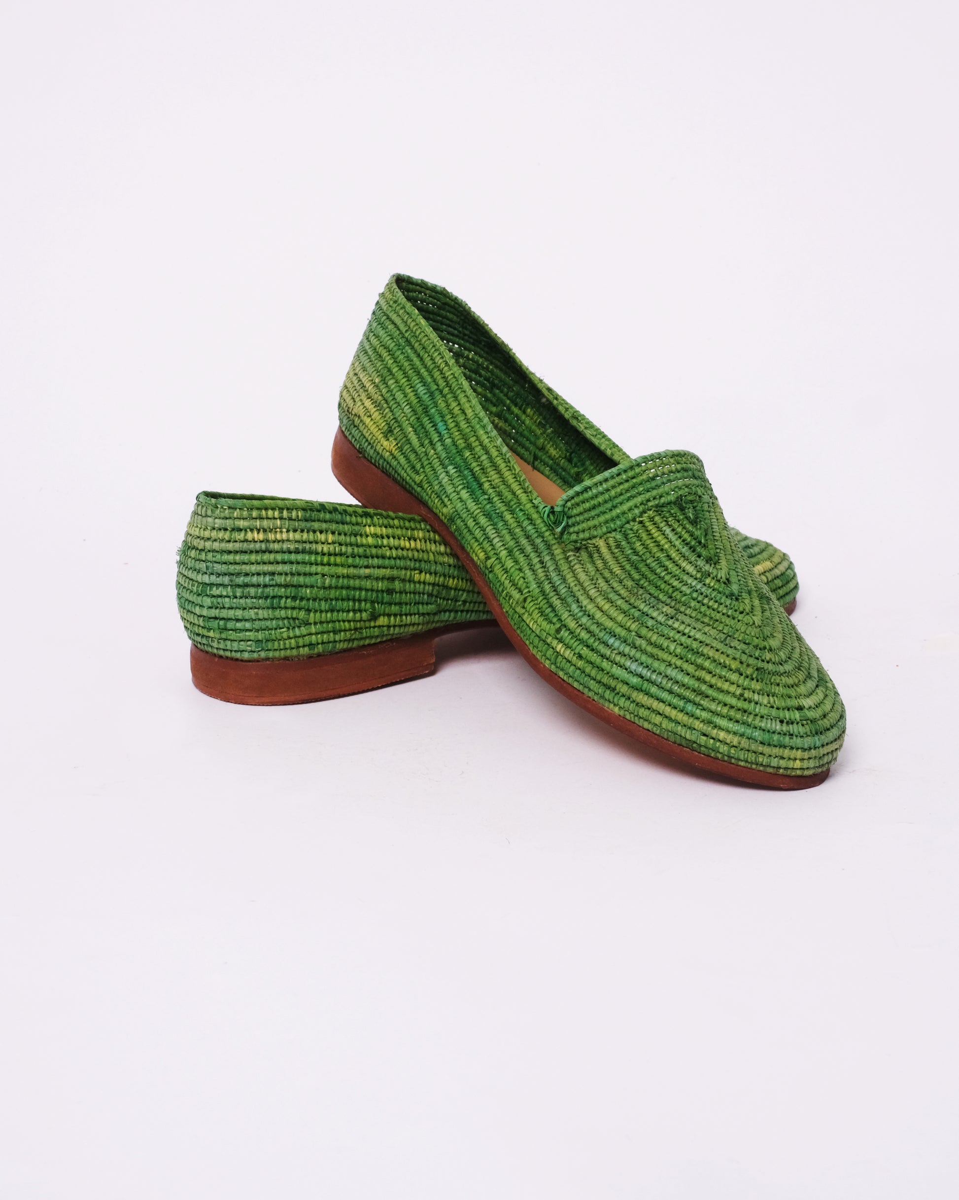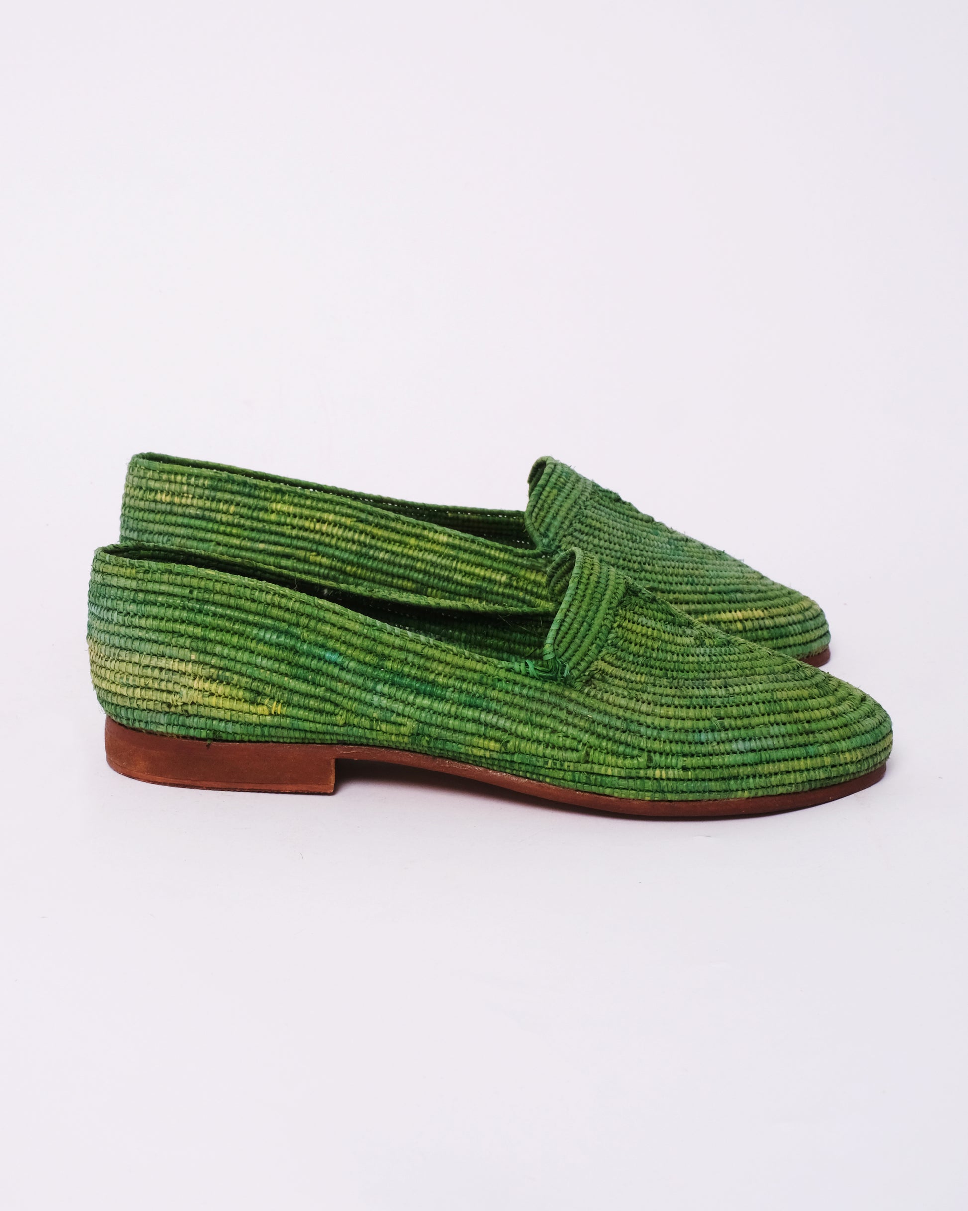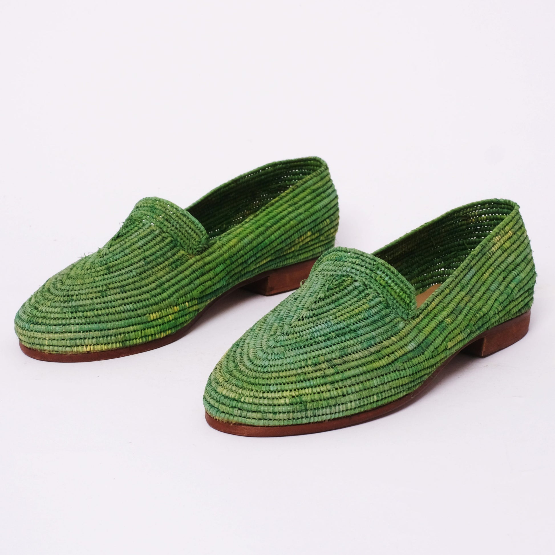 Green Raffia Loafers – Handmade Moroccan Flats for Women