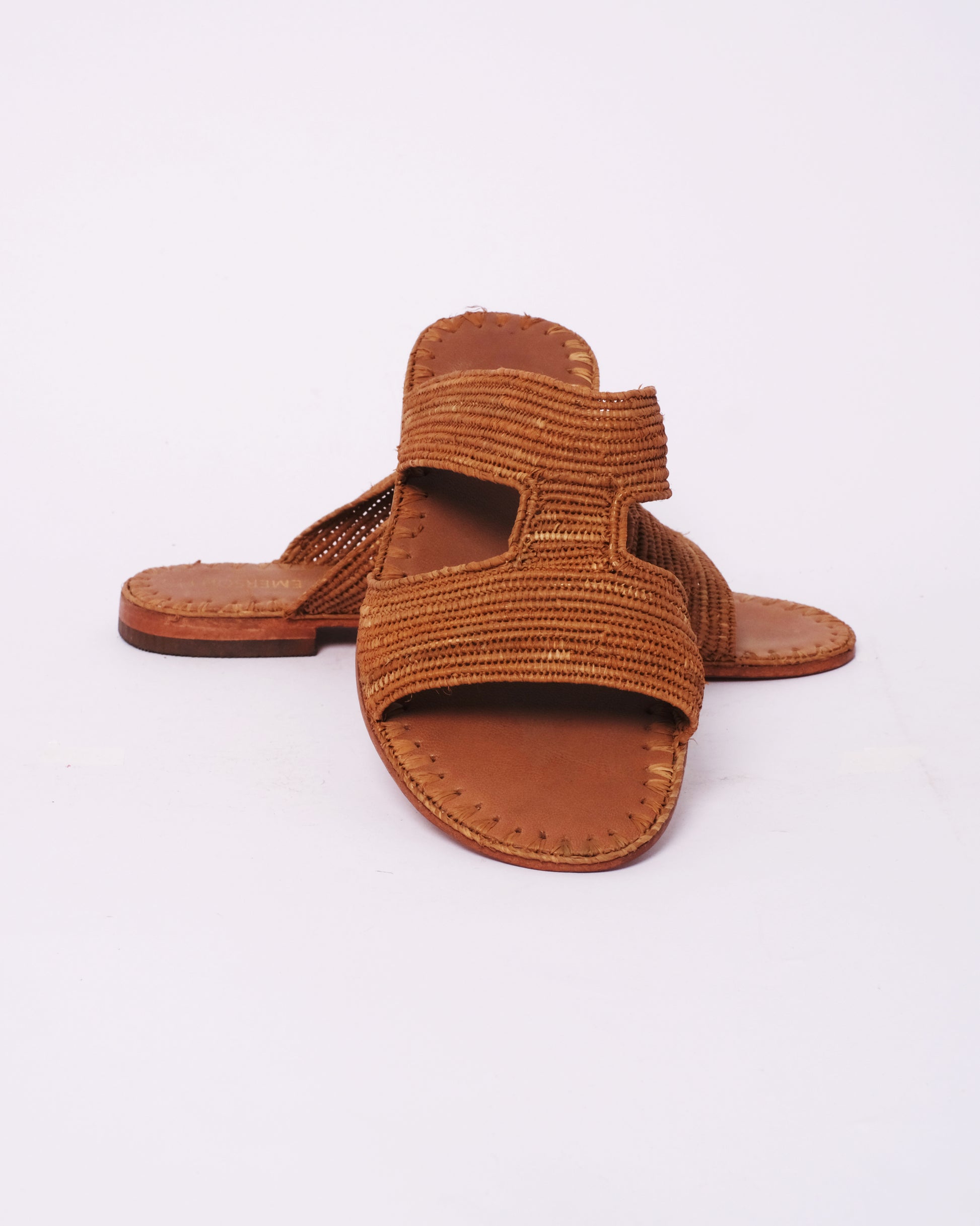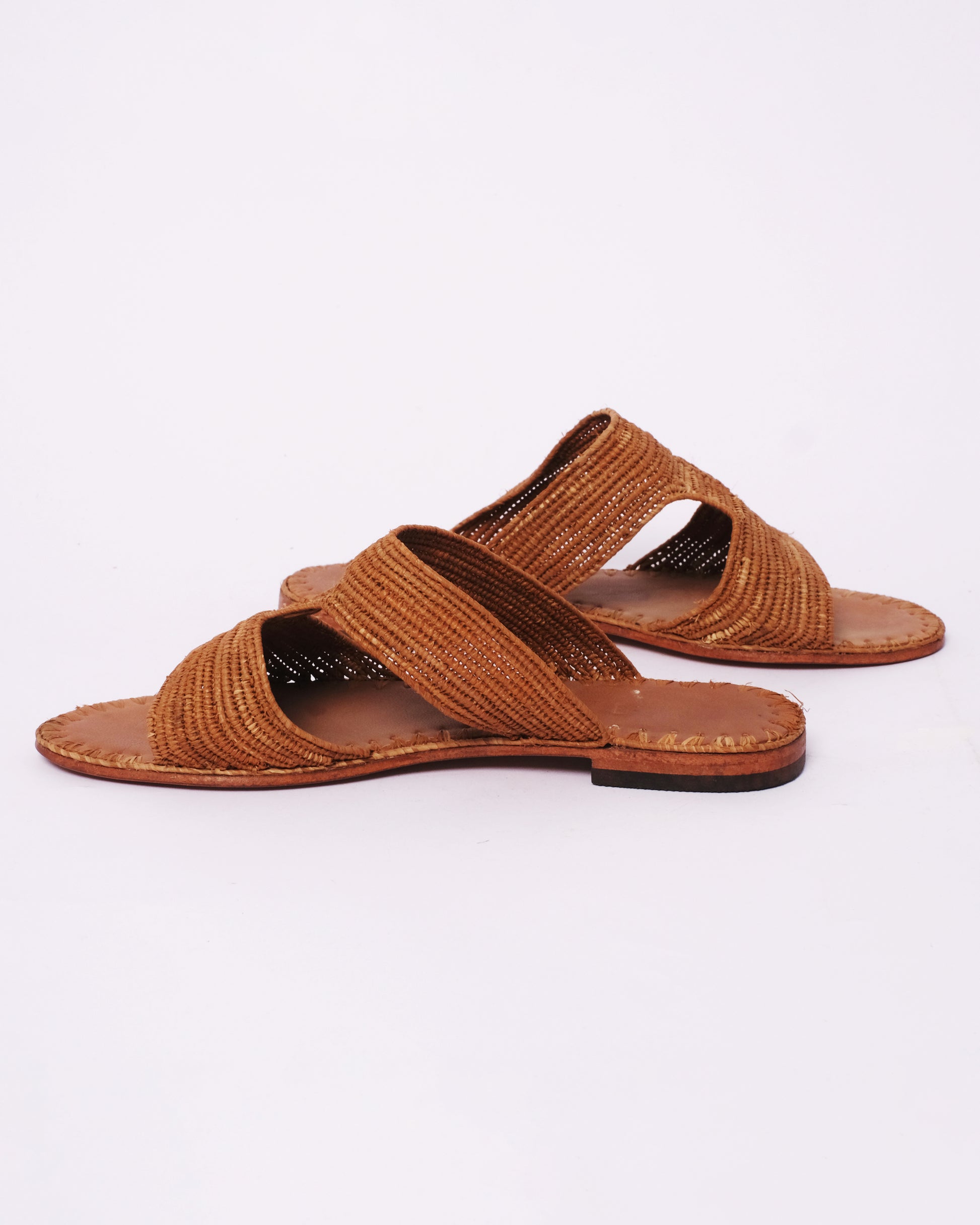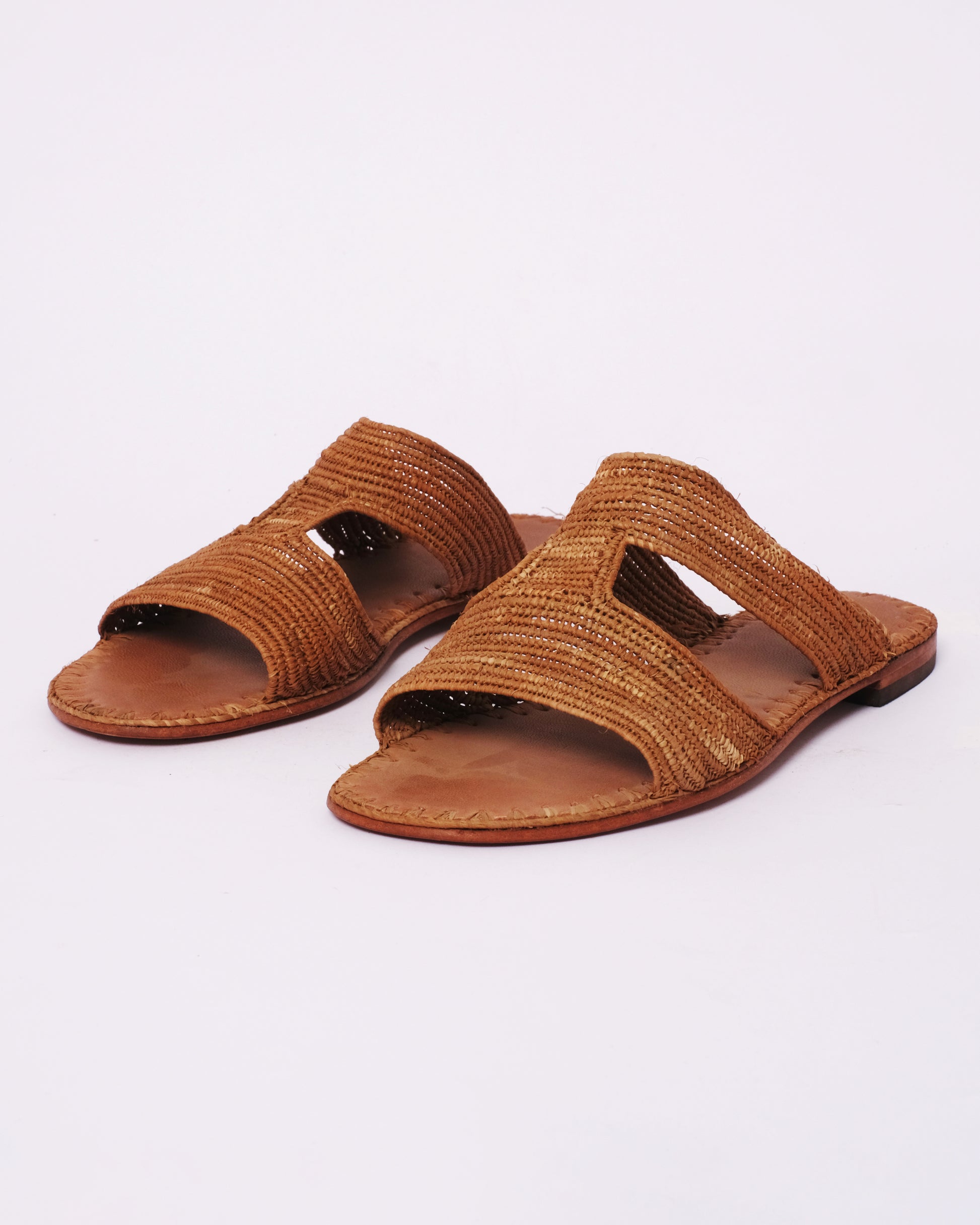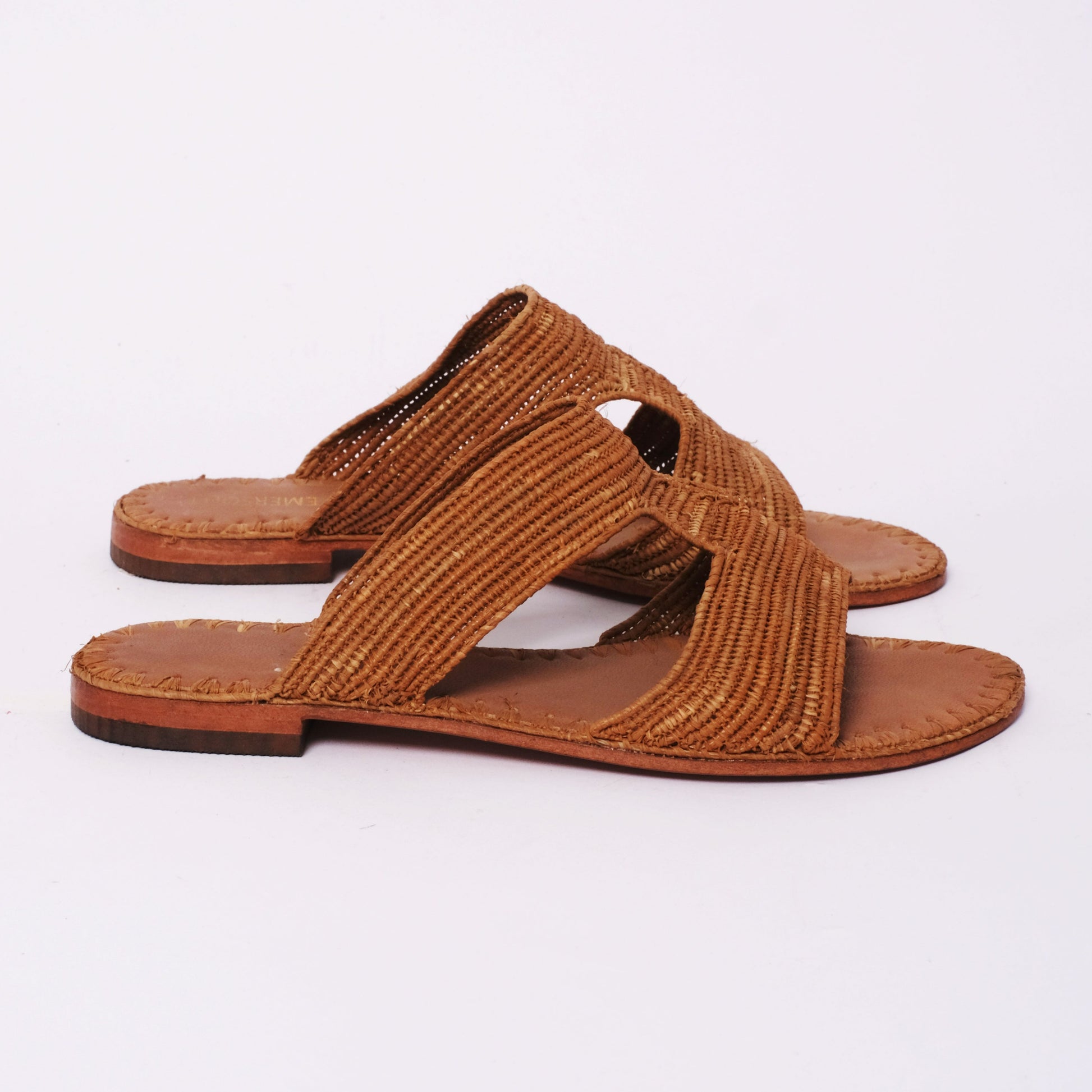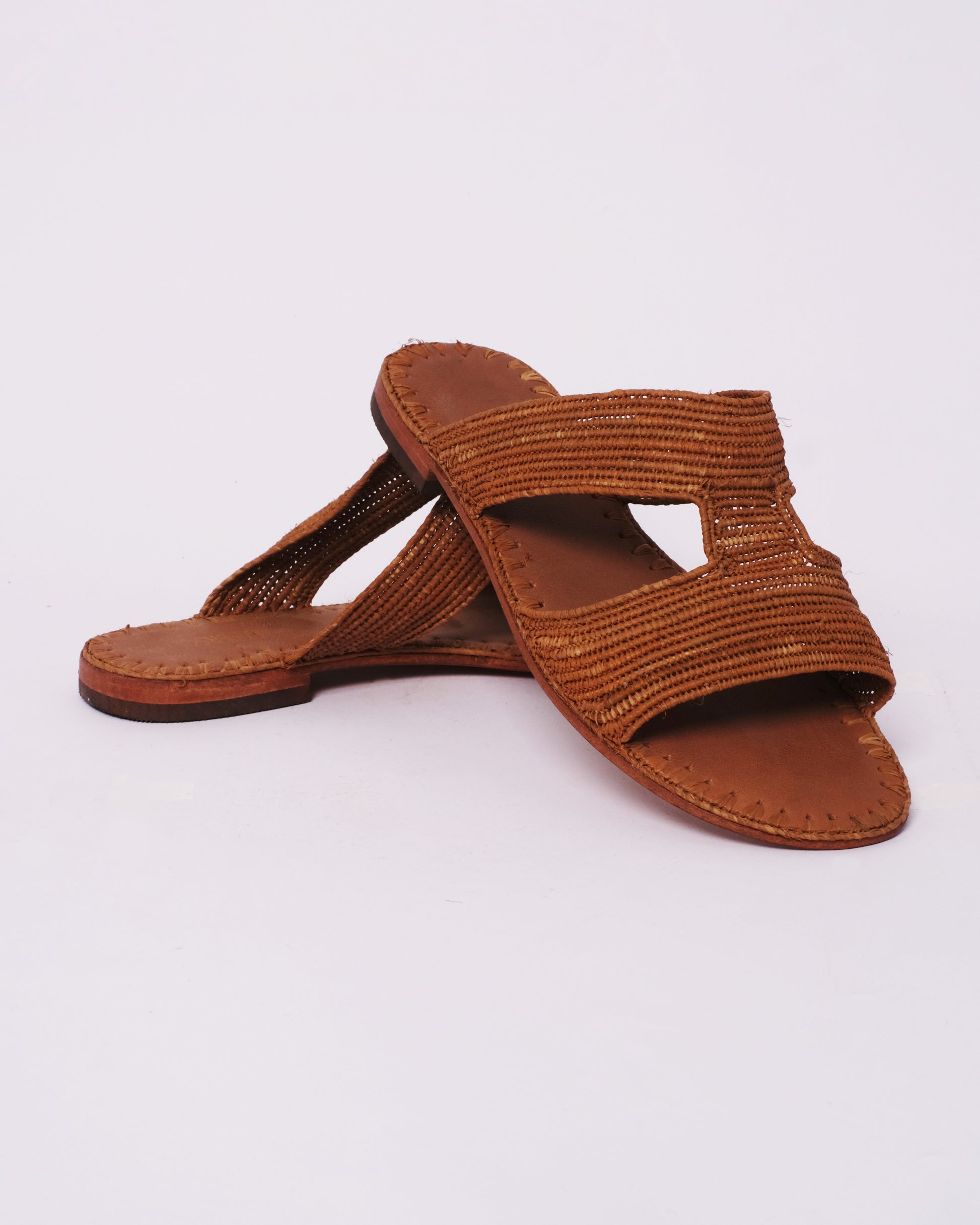 Handmade Brown Raffia Slide Sandals – Moroccan Artisan Summer Flats