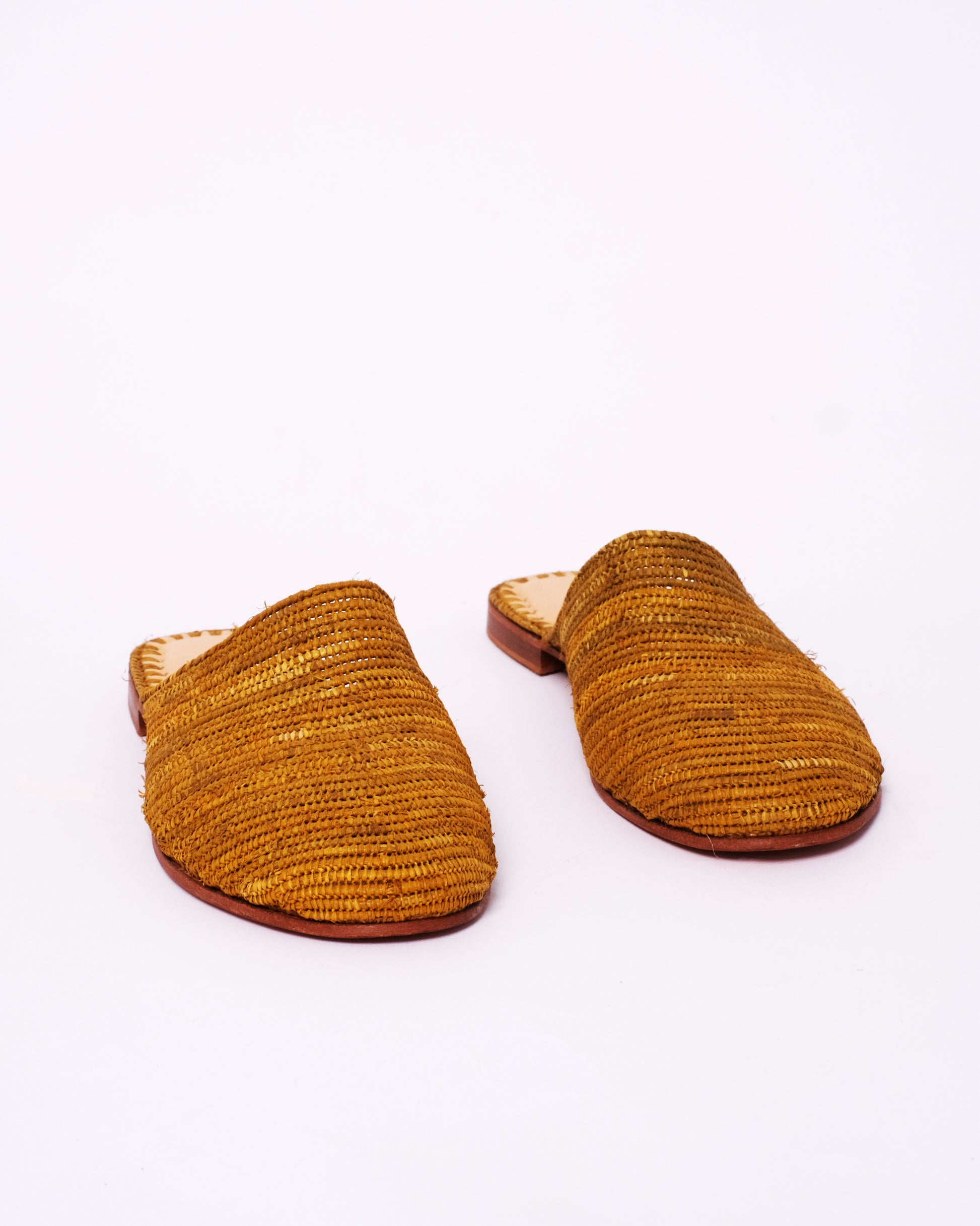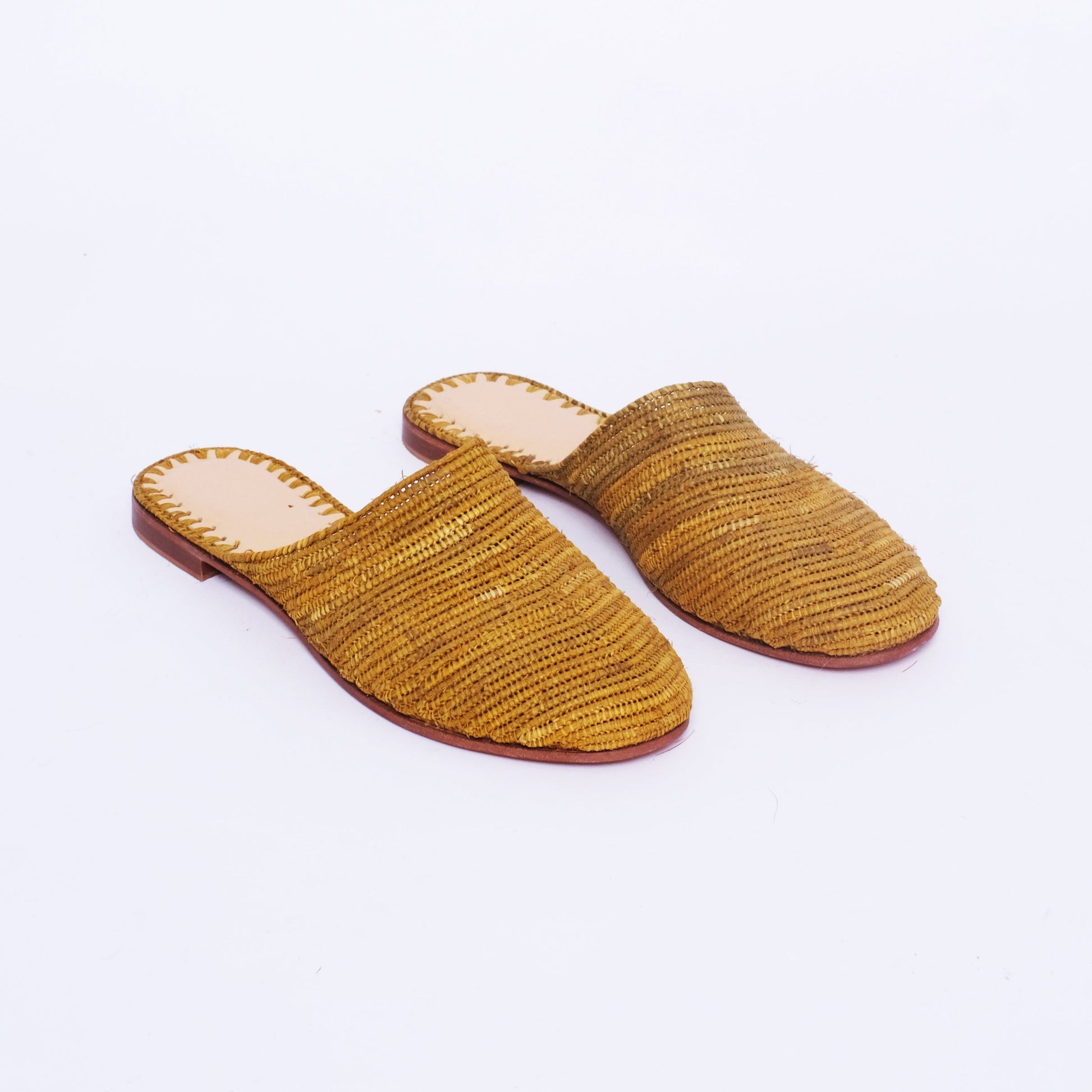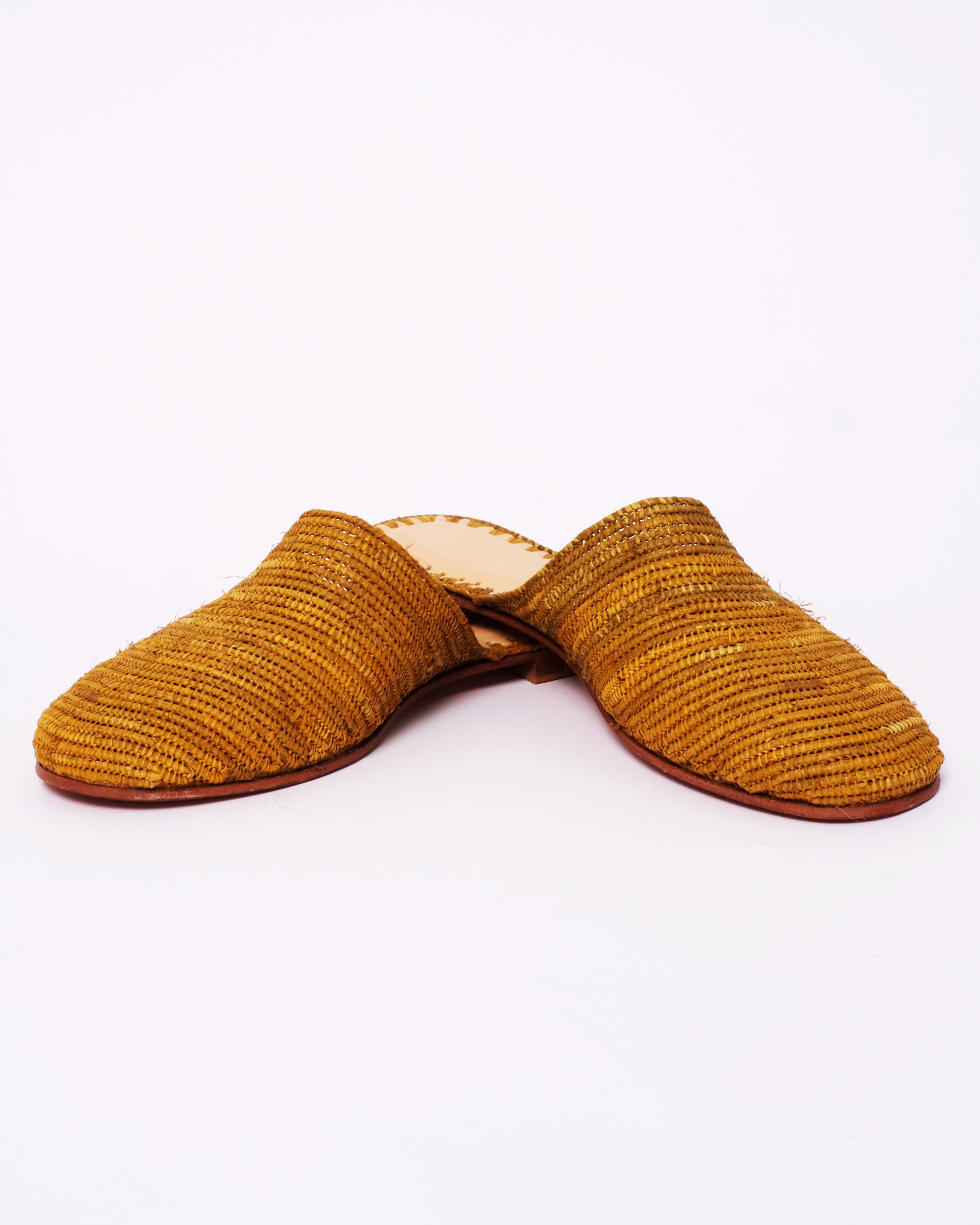 Mustard Raffia Mules – Handmade Moroccan Slip-On Flats for Women