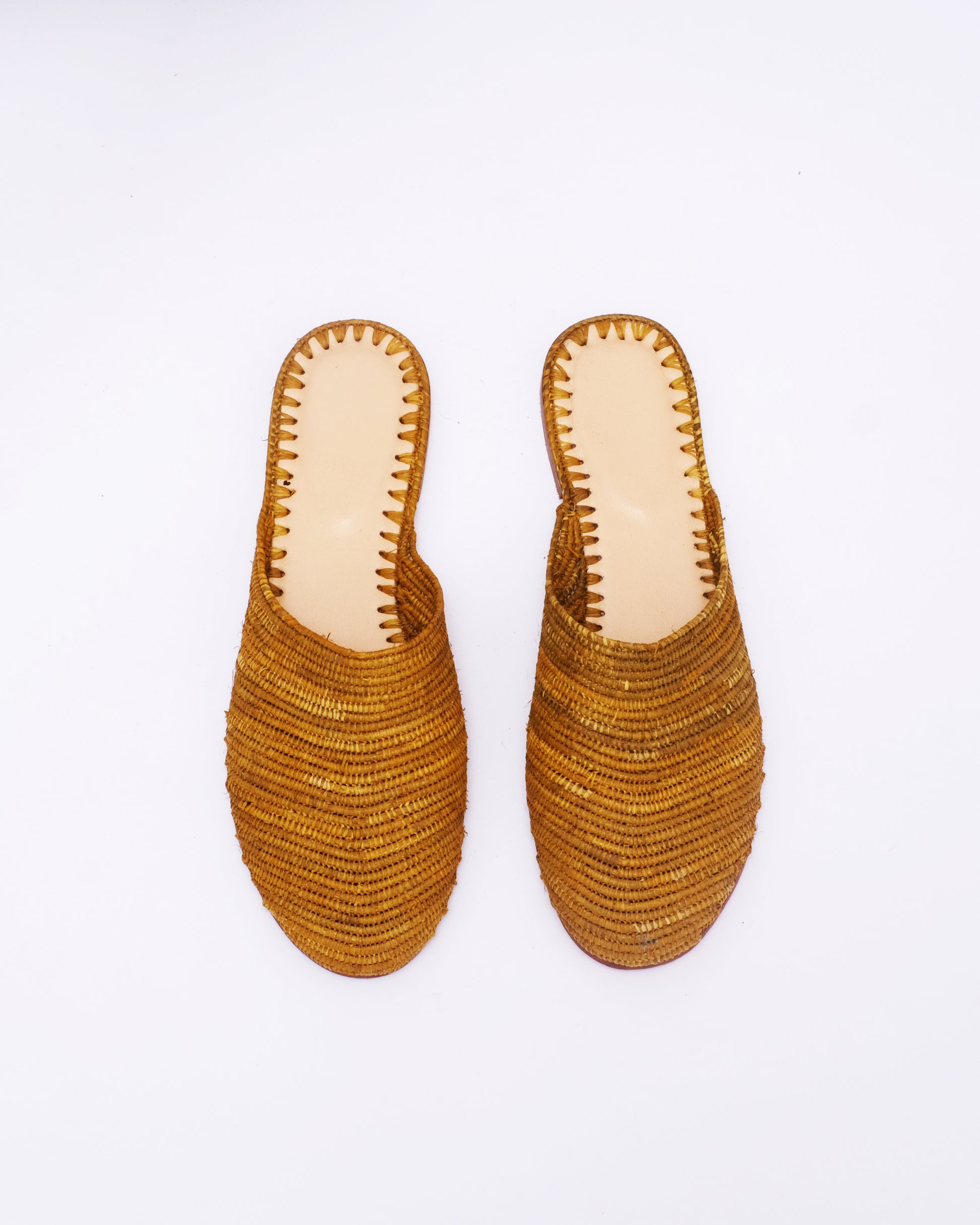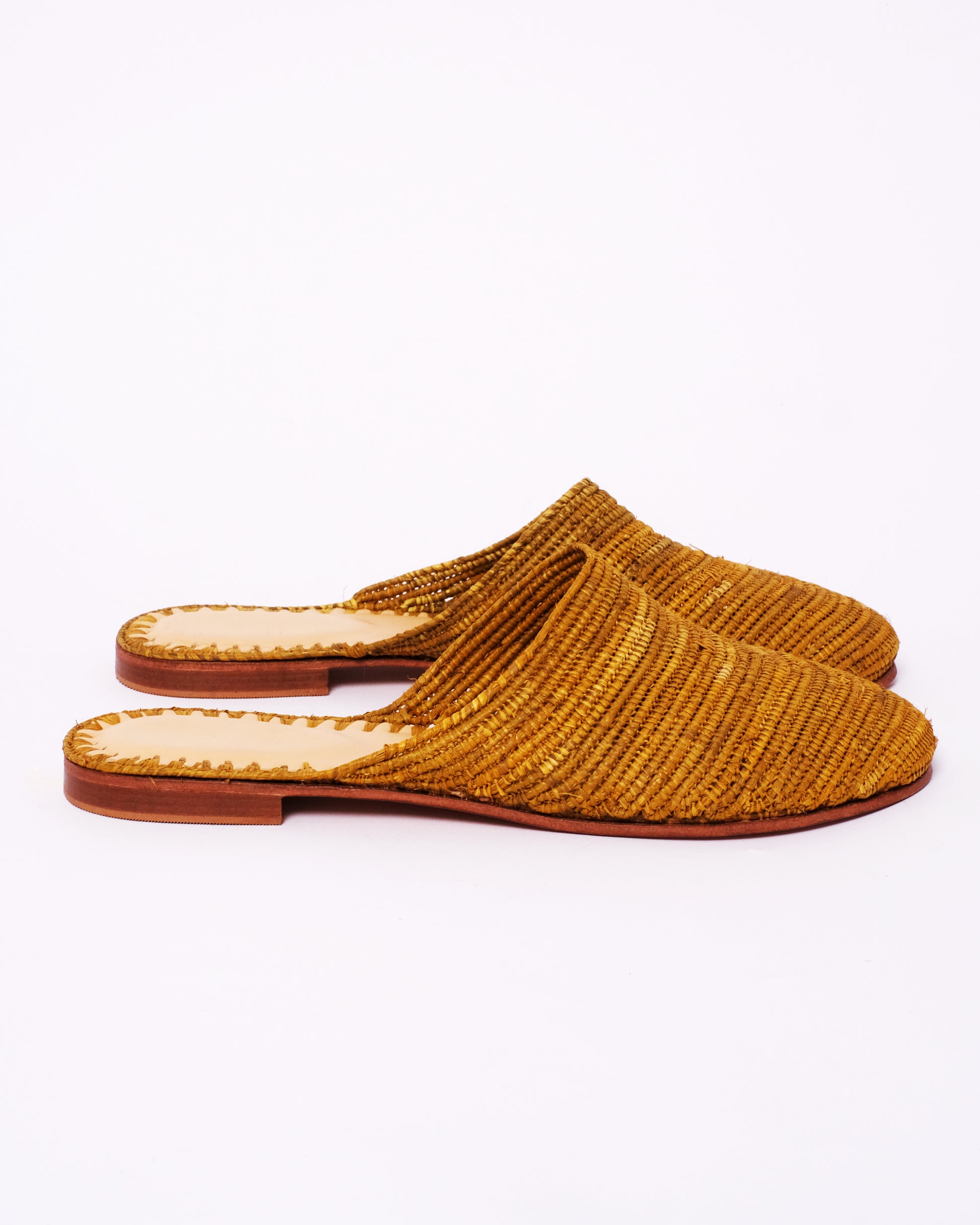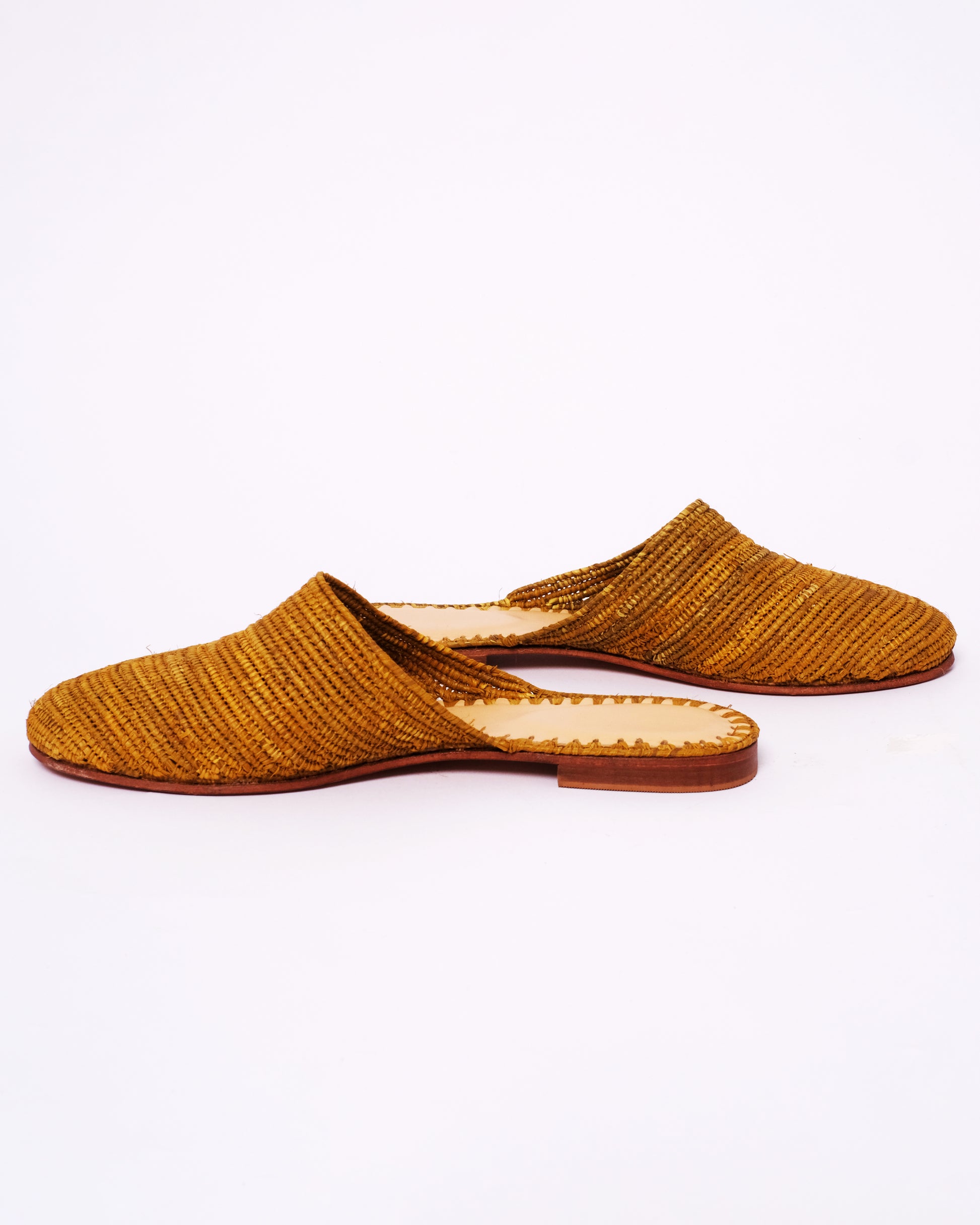 Mustard Raffia Mules – Handmade Moroccan Slip-On Flats for Women