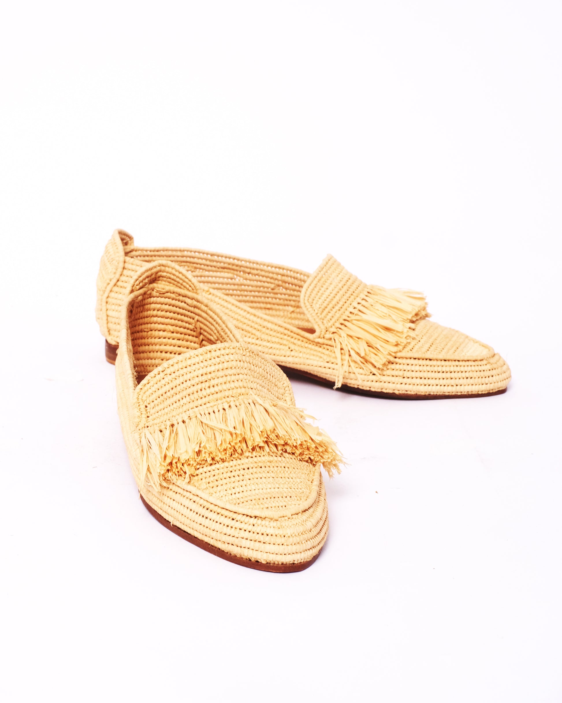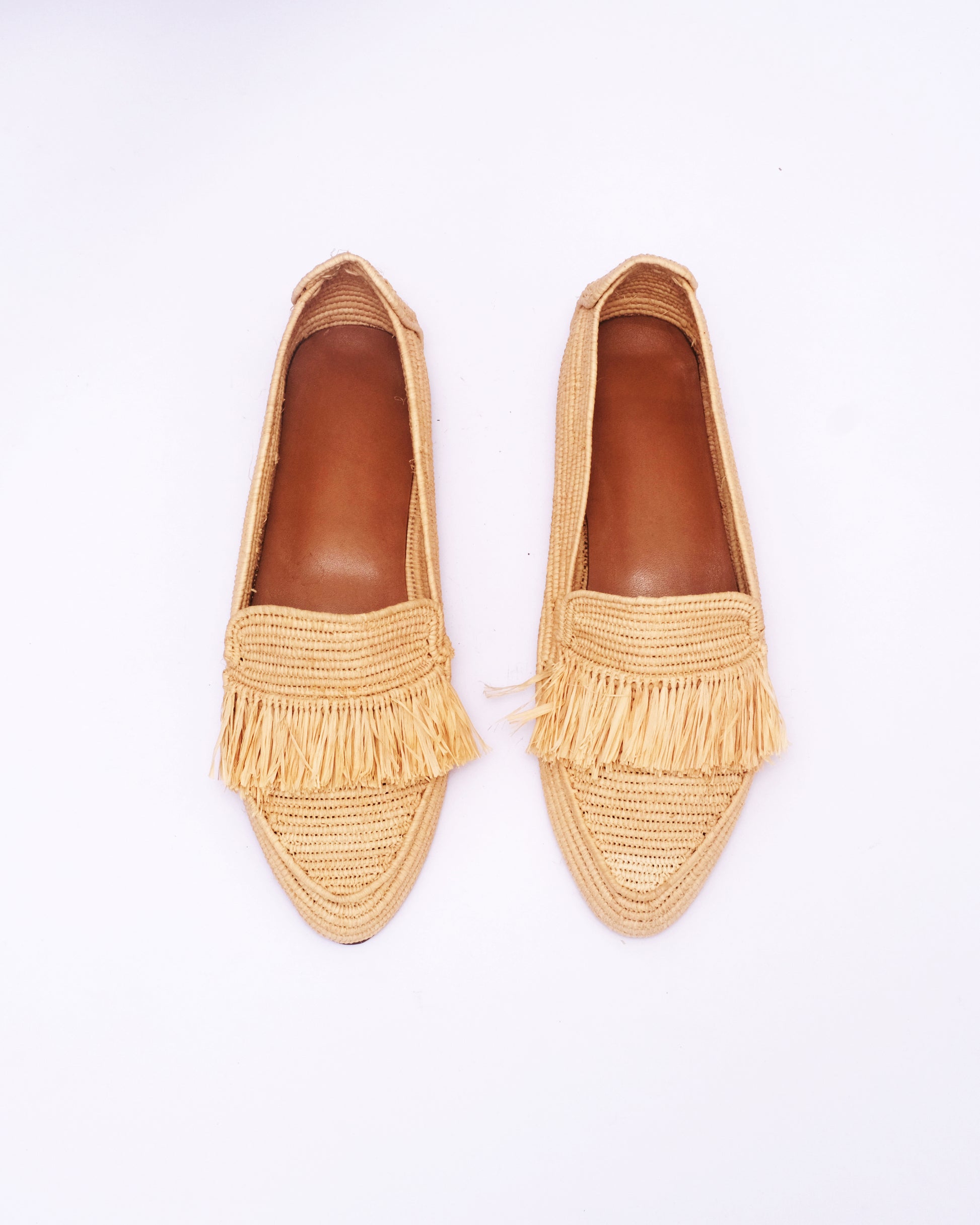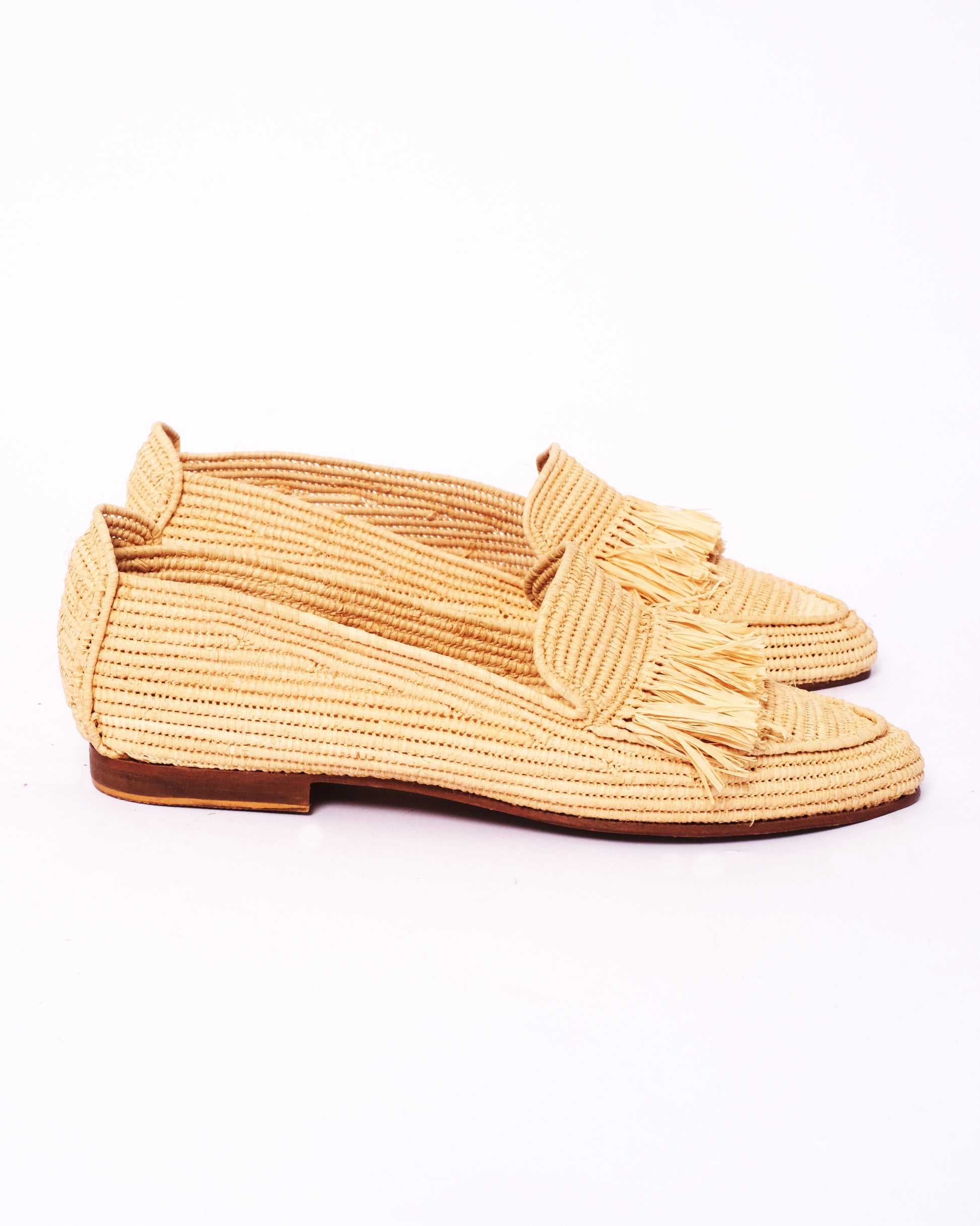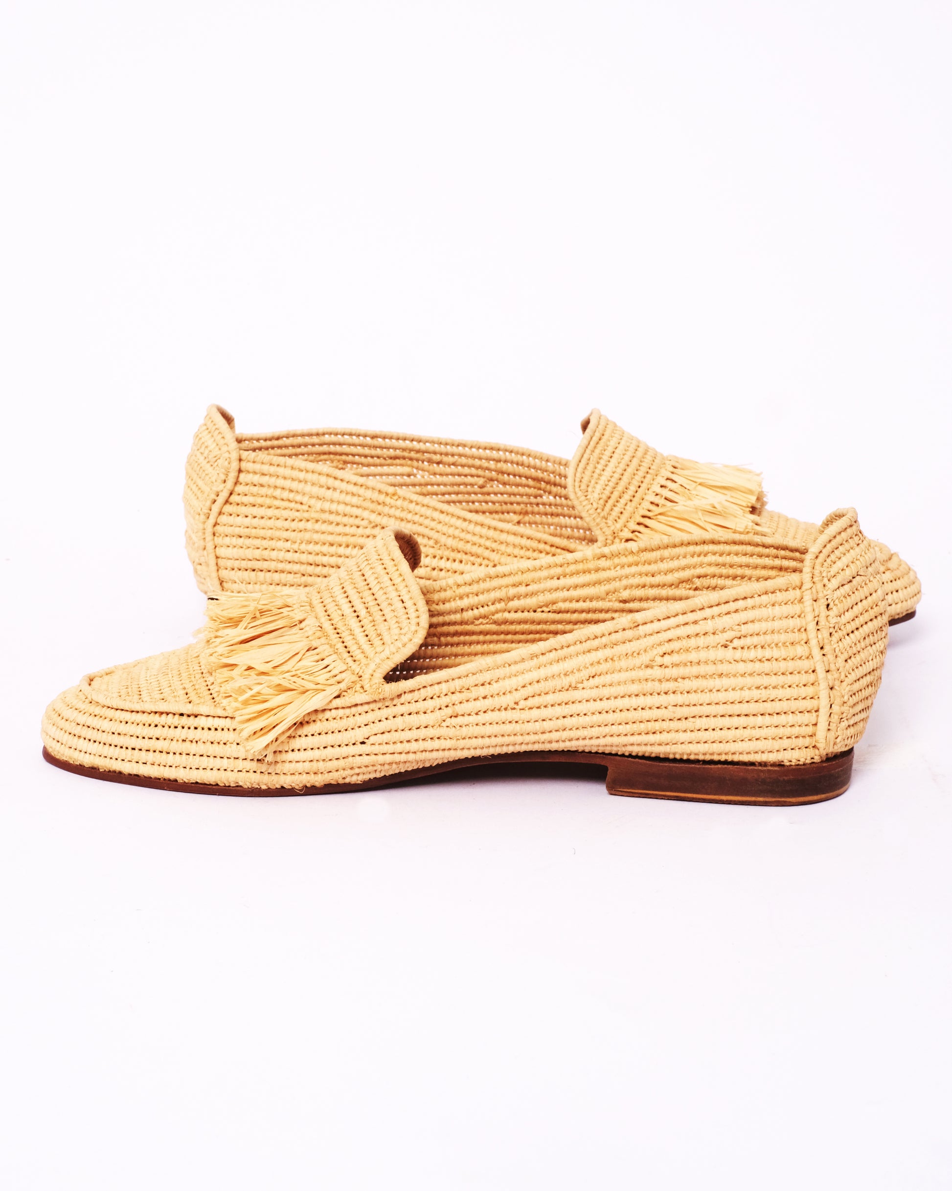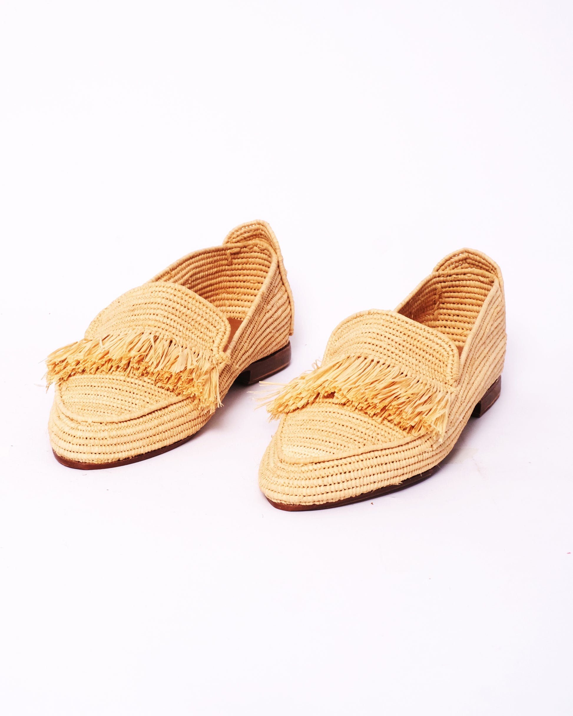 Natural Raffia Fringe Loafers – Handmade in Morocco