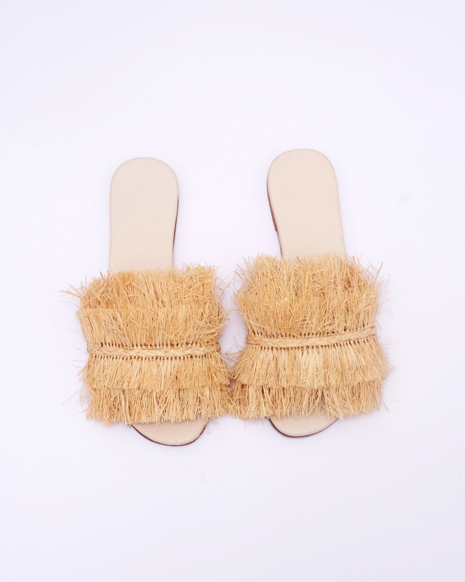 Natural Raffia Fringe Slides – Handmade Moroccan Statement Sandals