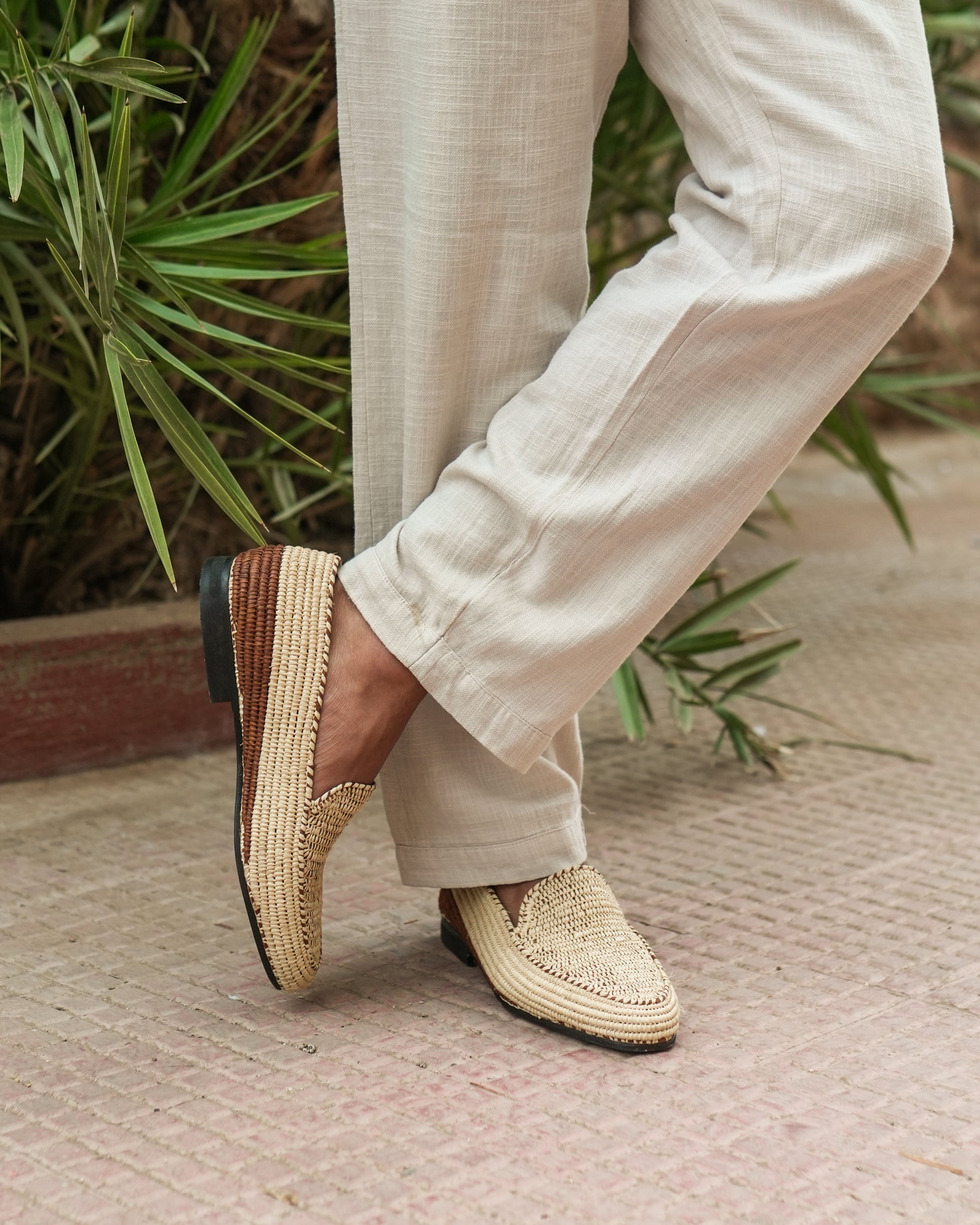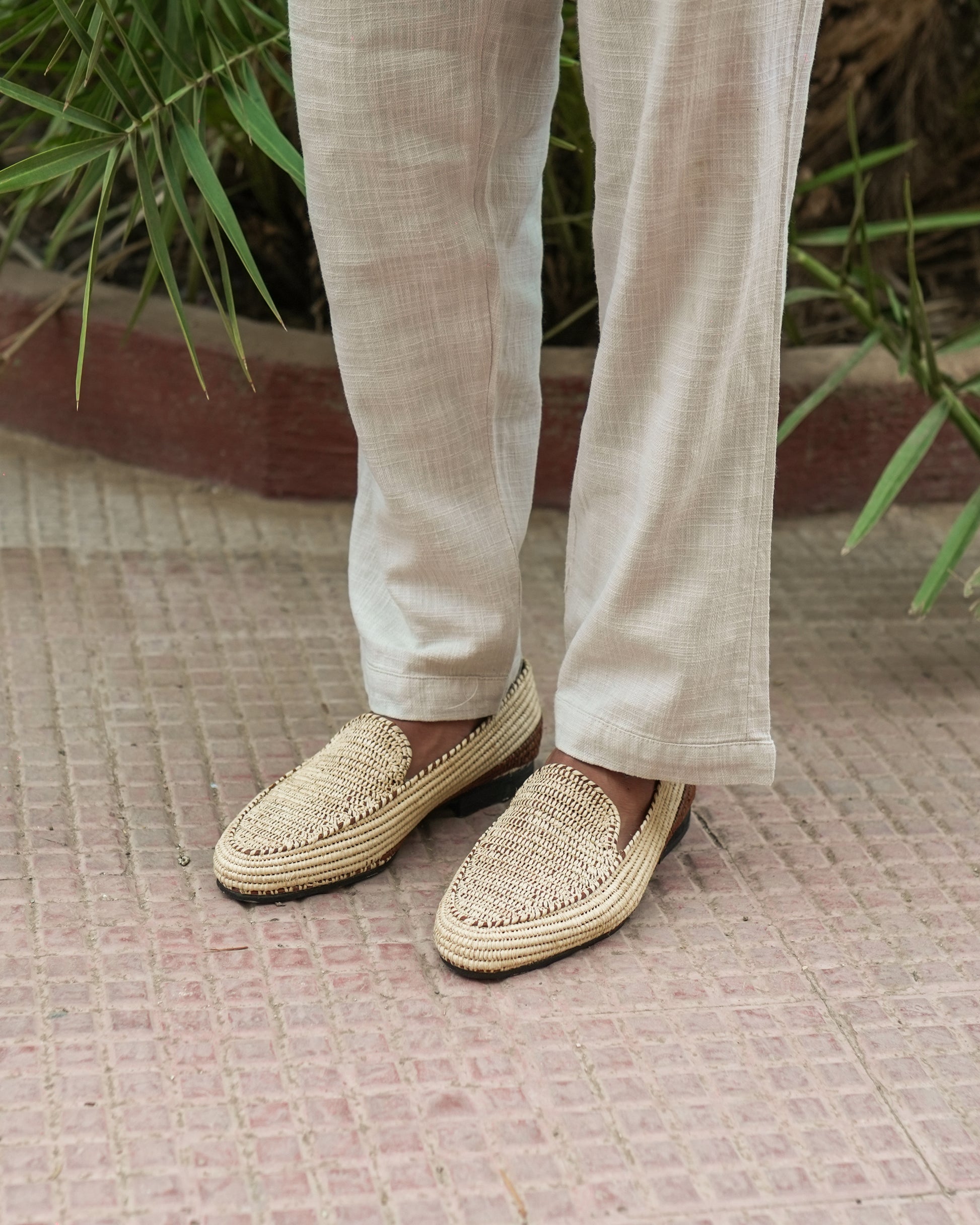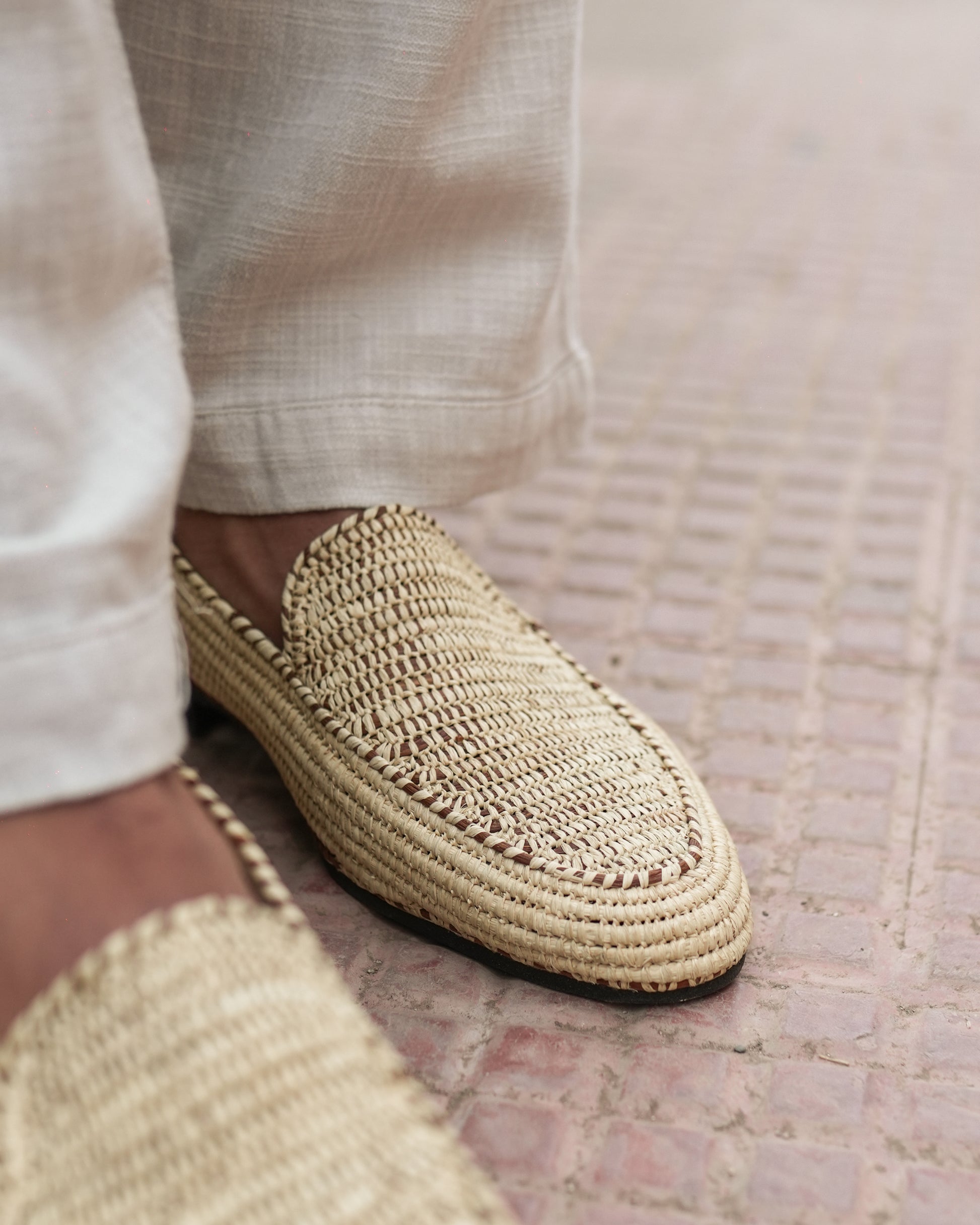Rooted in tradition, styled for now. These natural raffia loafers are handcrafted in Marrakech with handwoven raffia and a distinctive braided rope detail along the sole. Lightweight, breathable, and textured, they’re perfect for warm days and effortless dressing.
