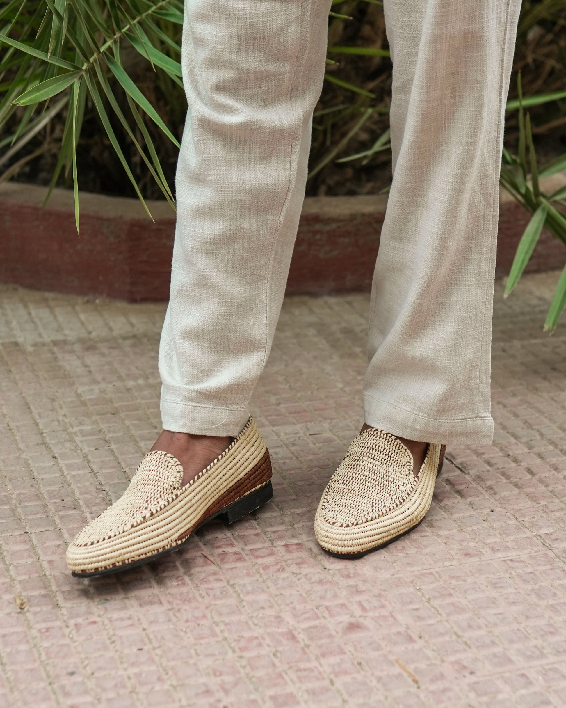Men’s Handwoven Raffia Loafers – Natural with Braided Detail