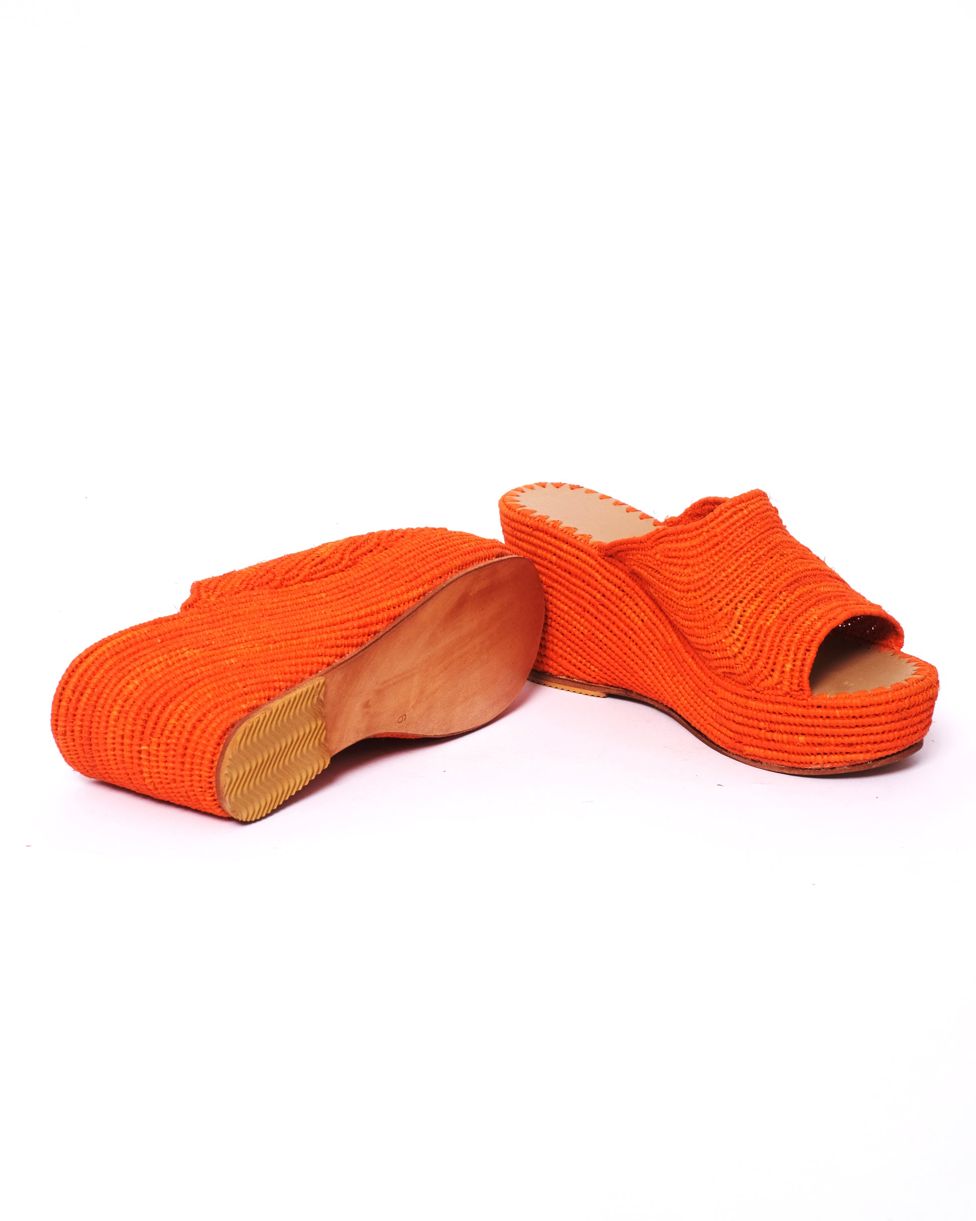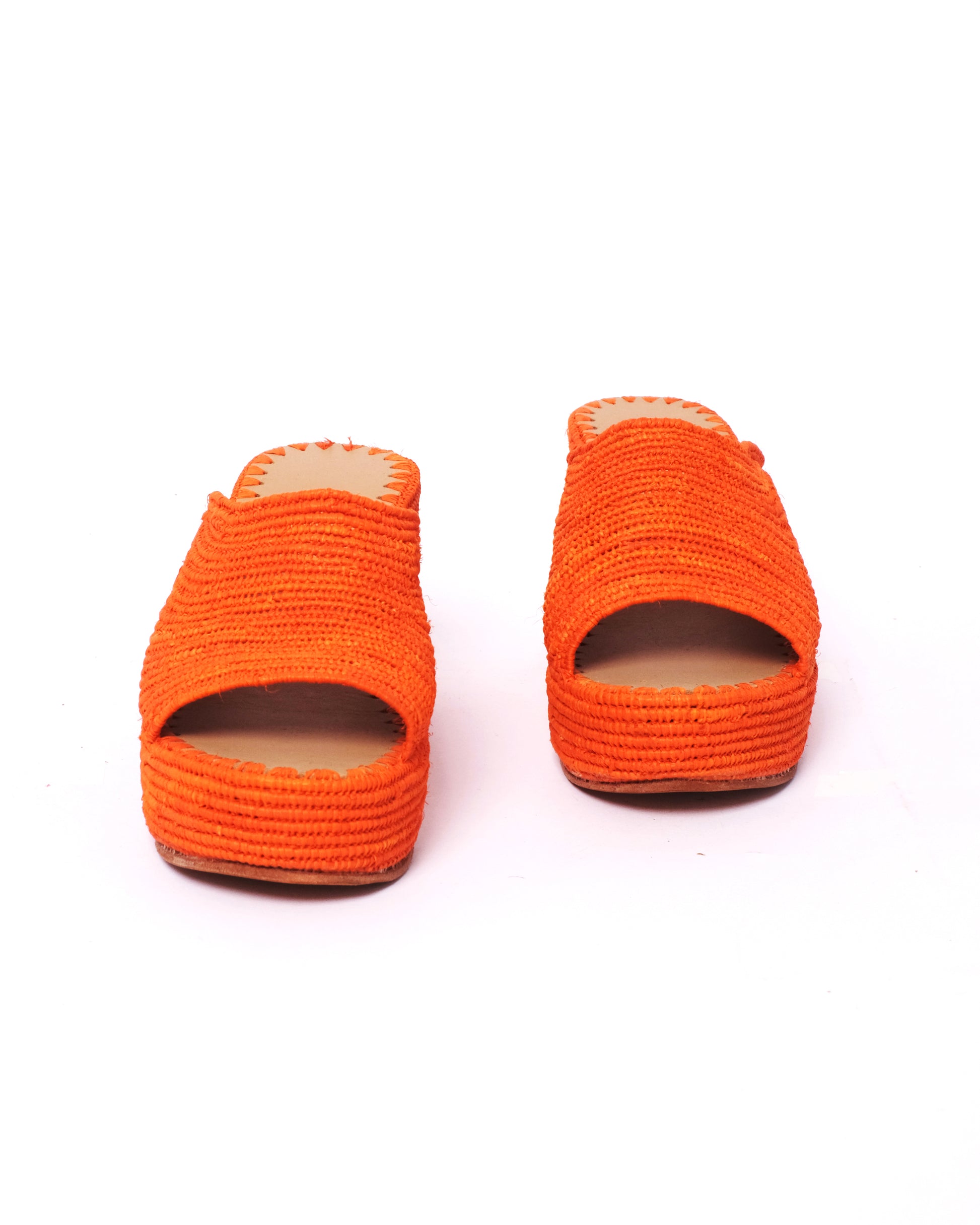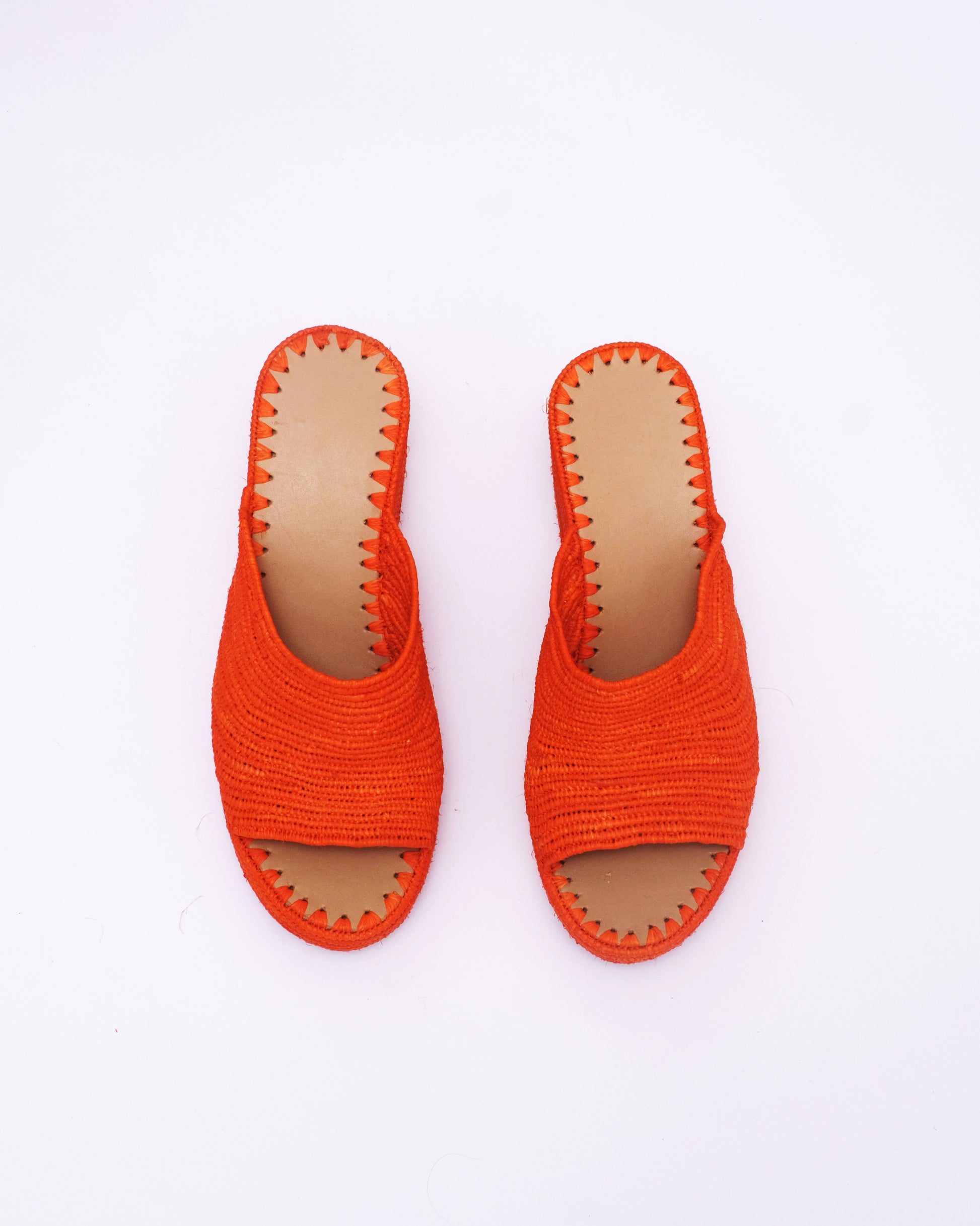 Orange Raffia Wedge Mules – Handmade Moroccan Platform Sandals