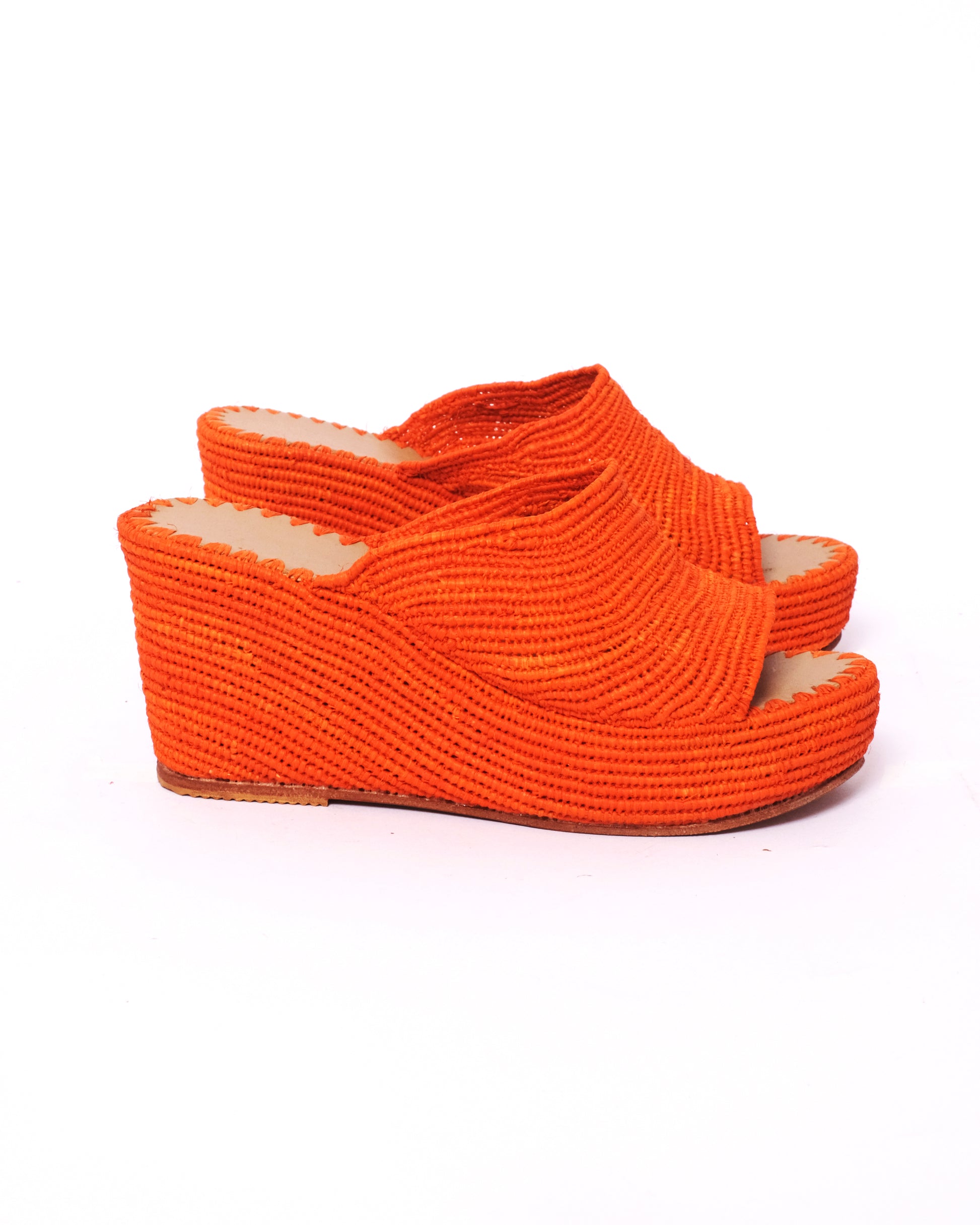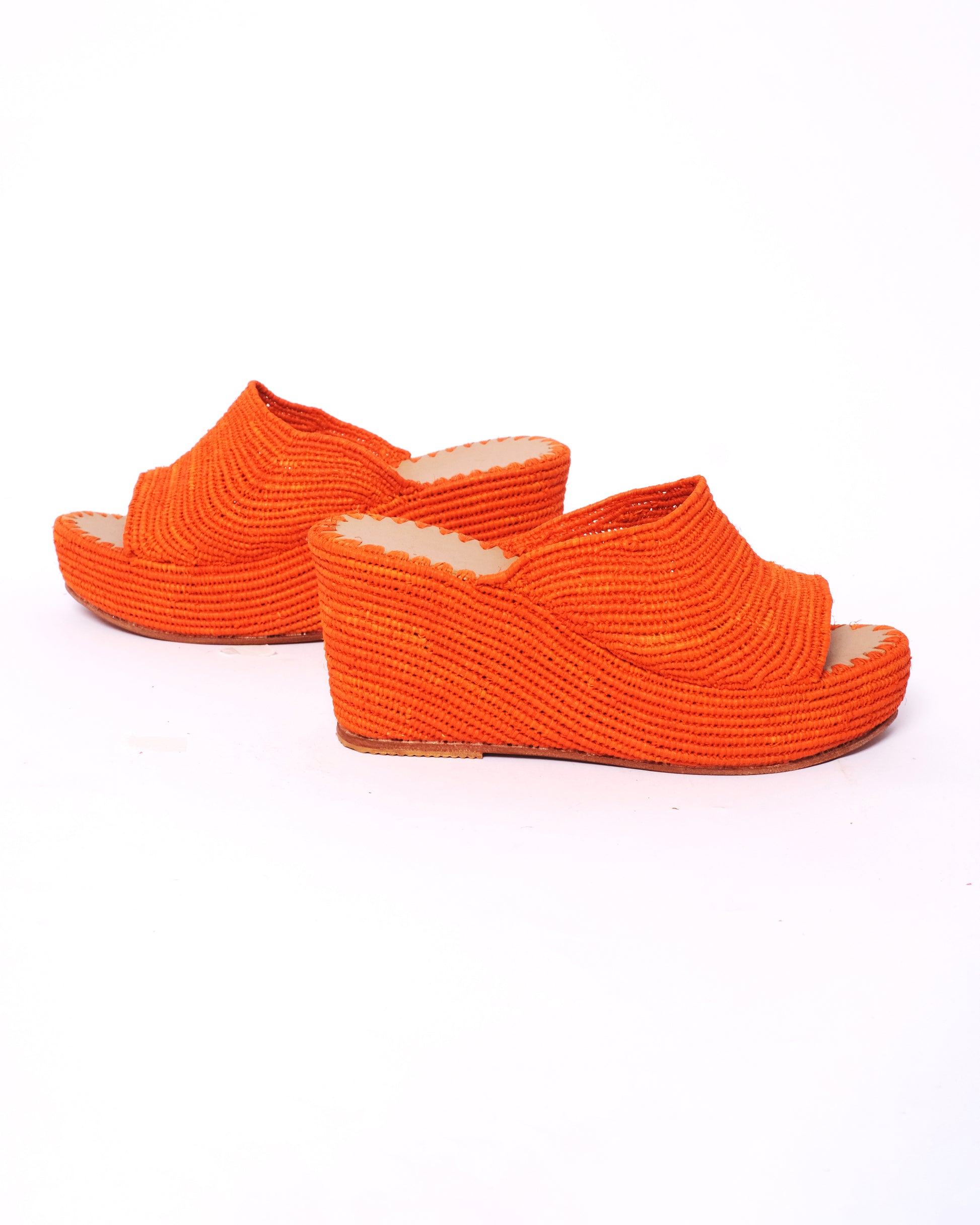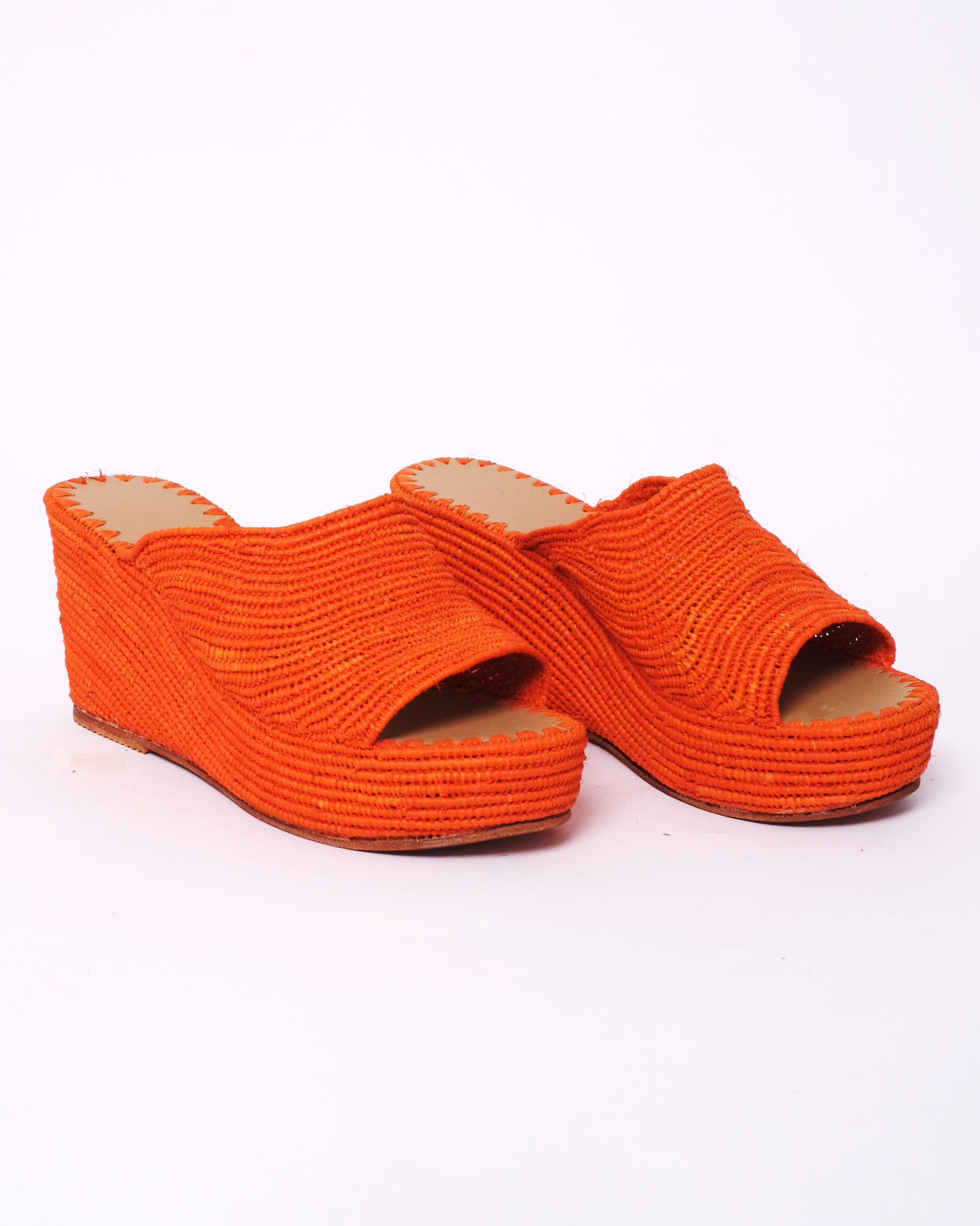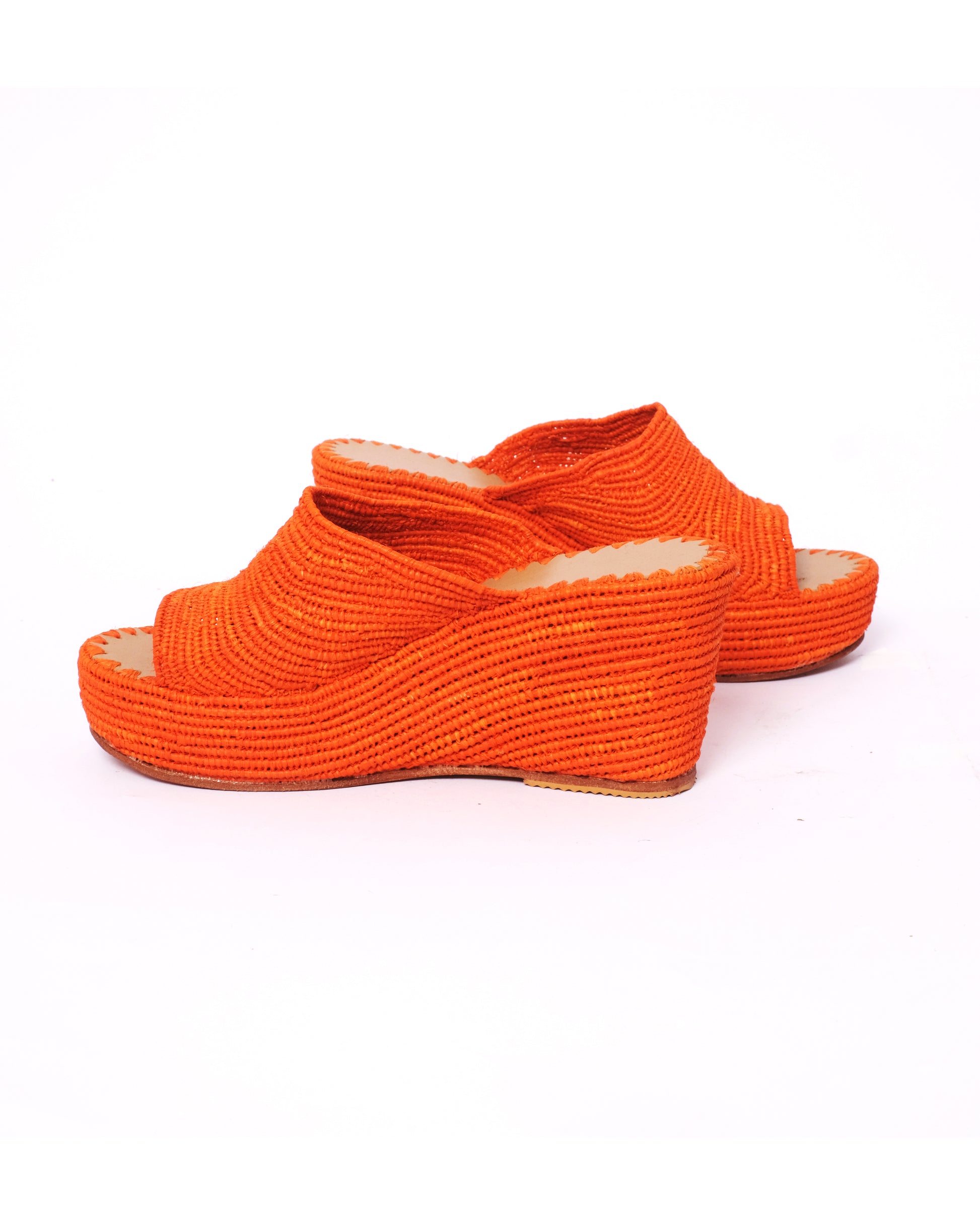 Orange Raffia Wedge Mules – Handmade Moroccan Platform Sandals