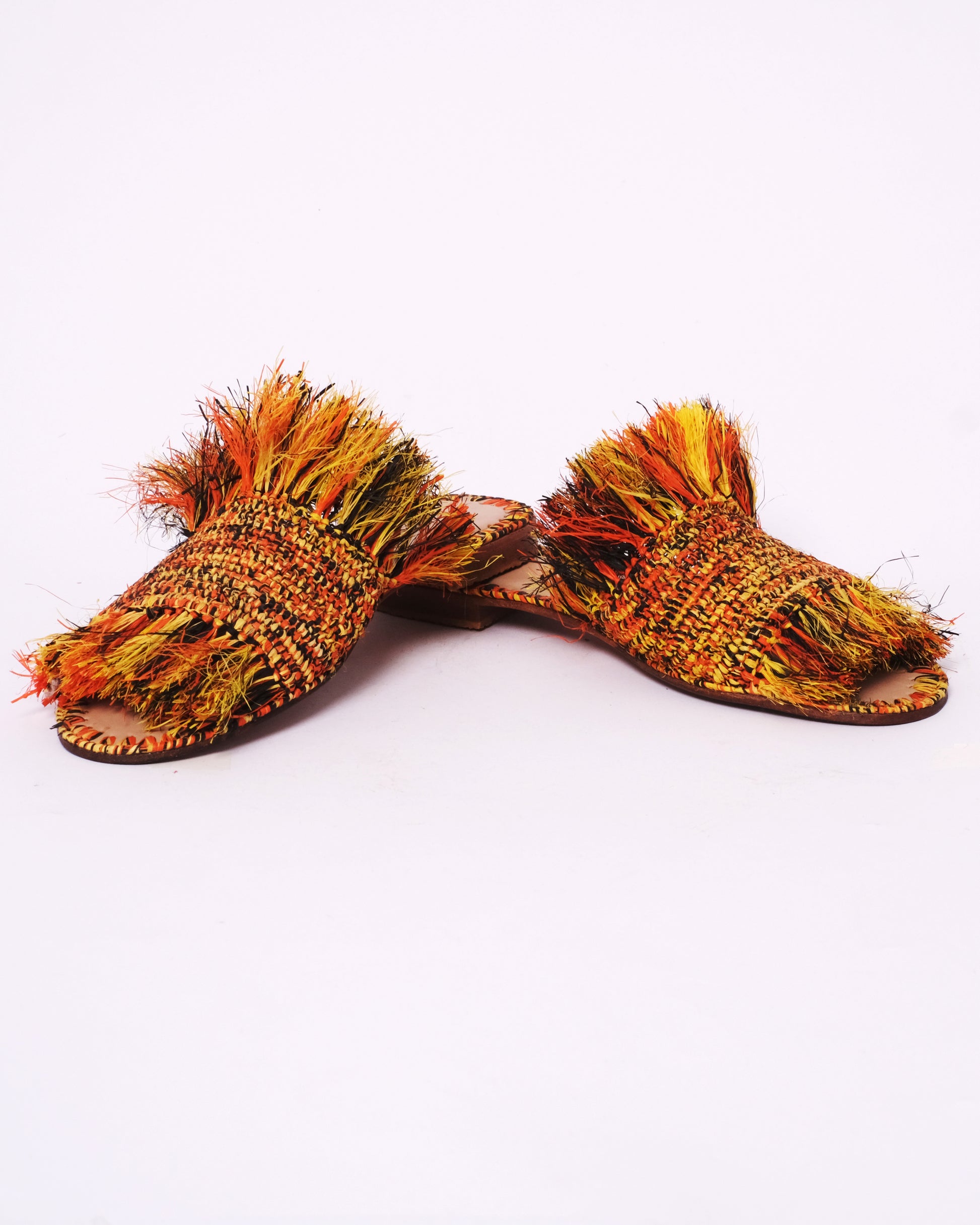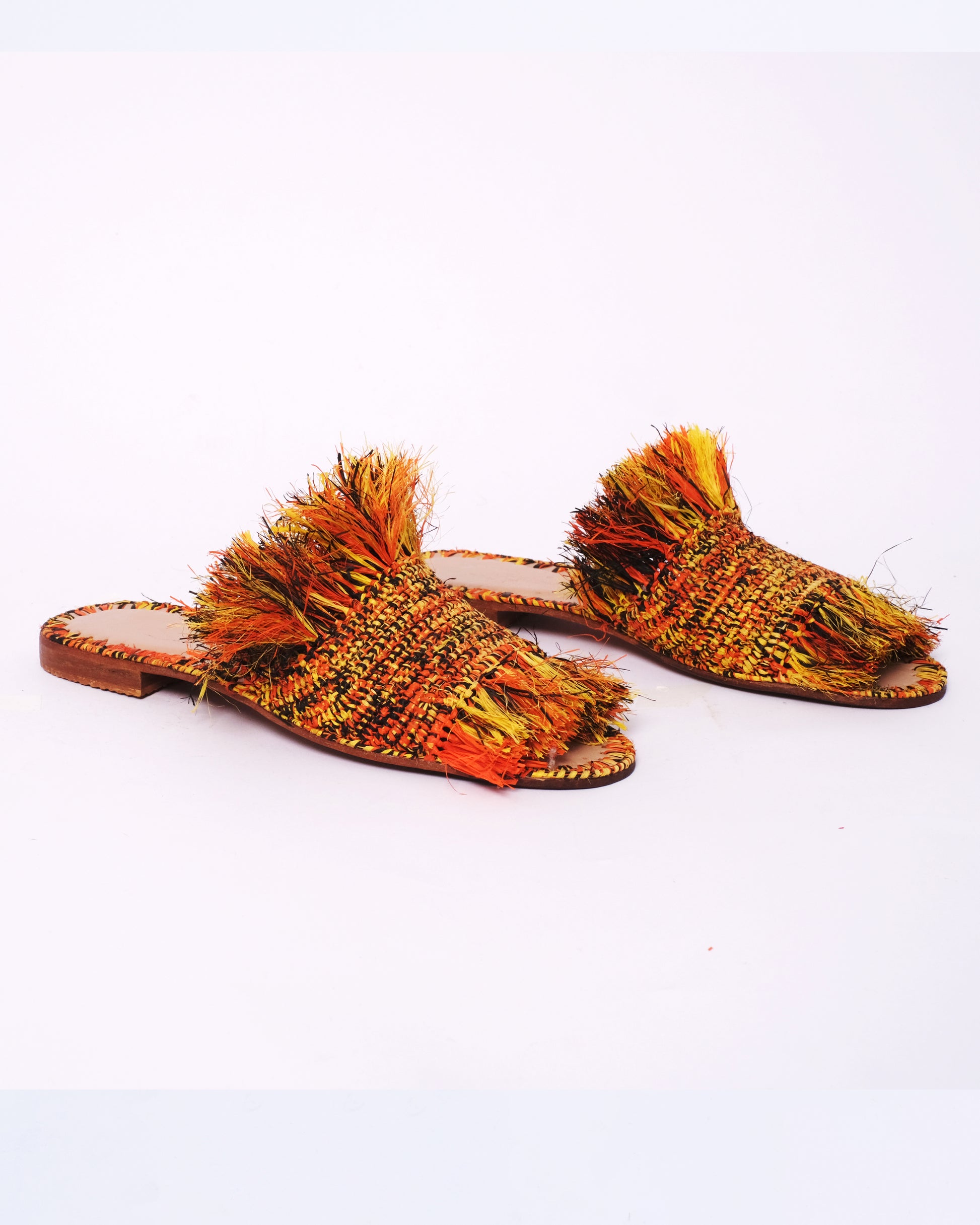 Sunset Fringe Raffia Slides – Handmade Moroccan Boho Sandals