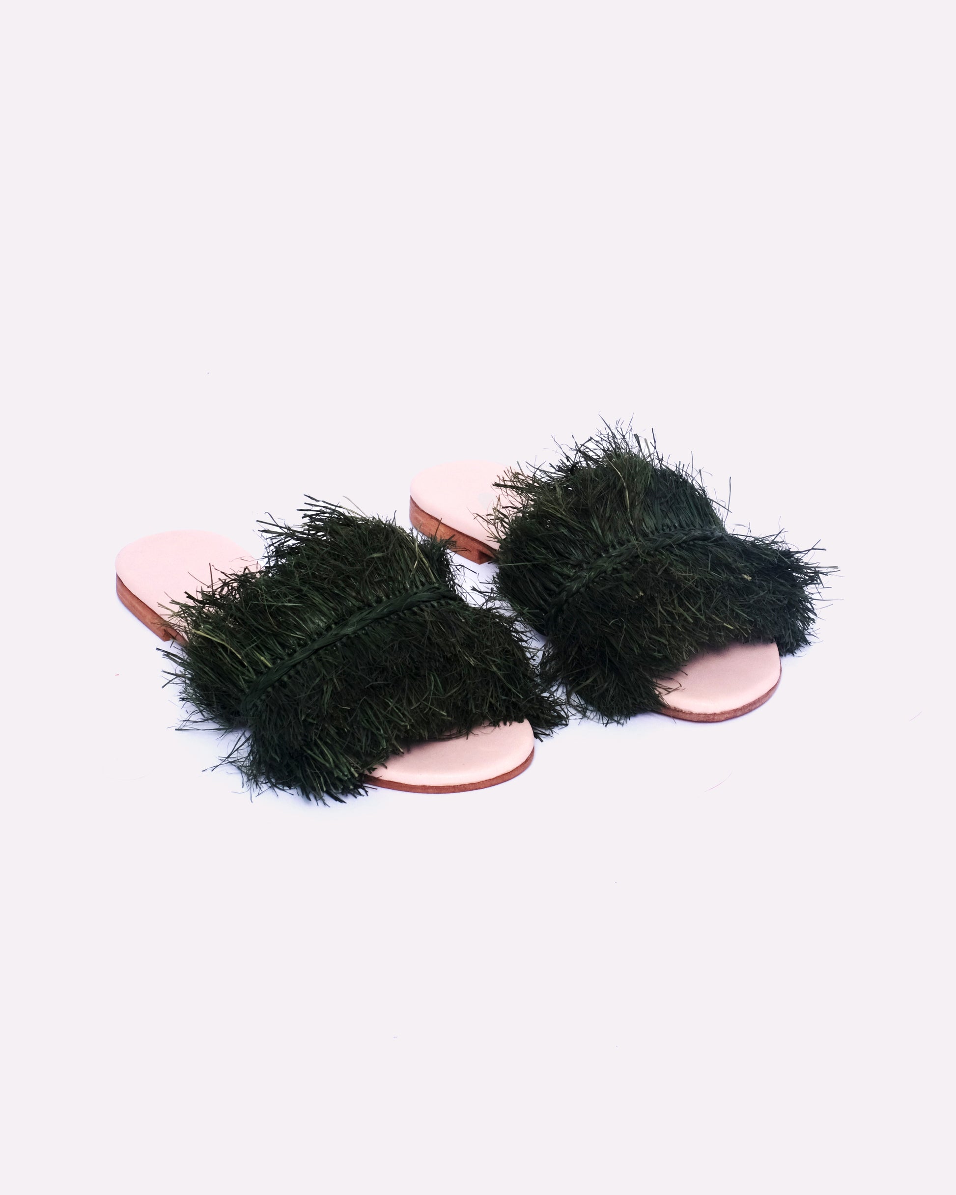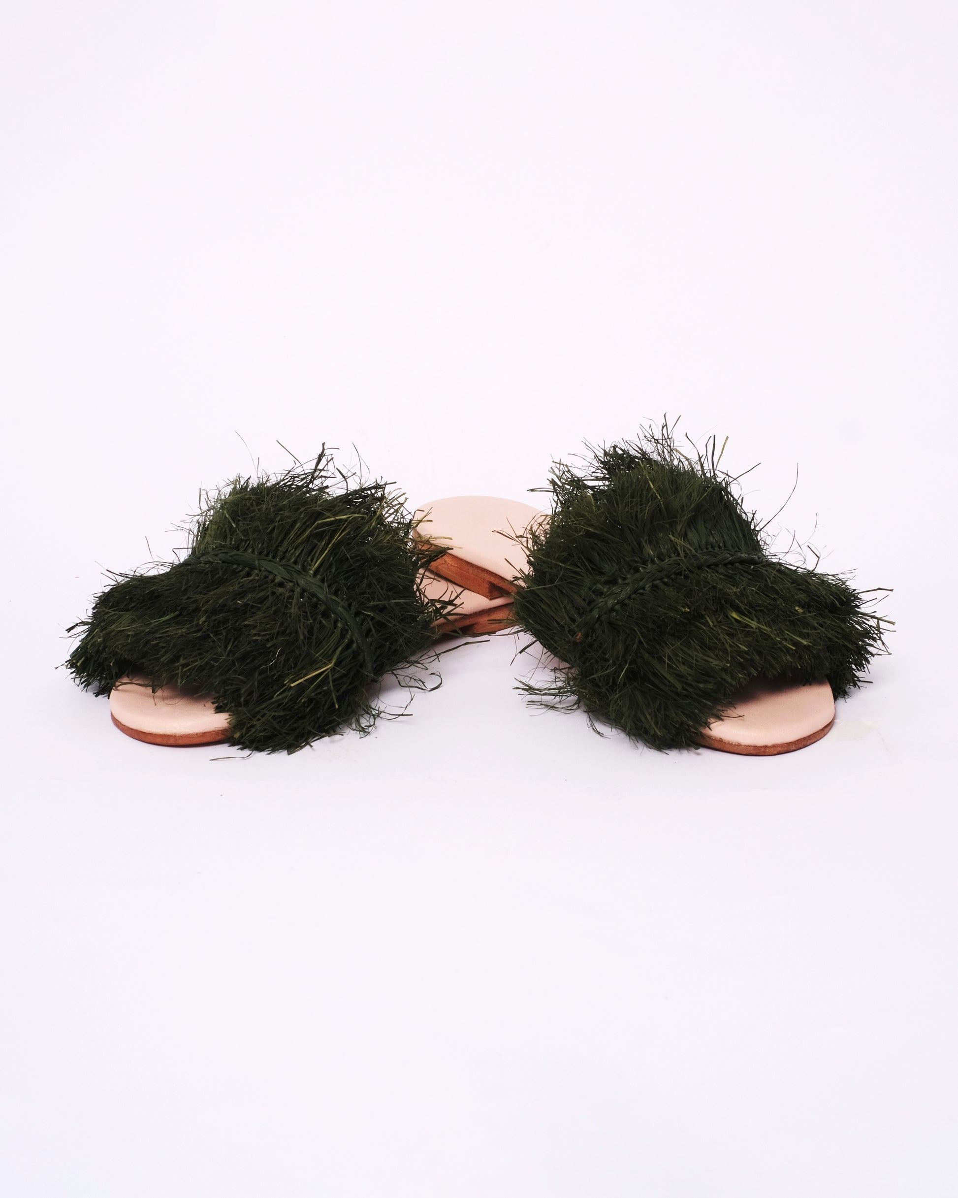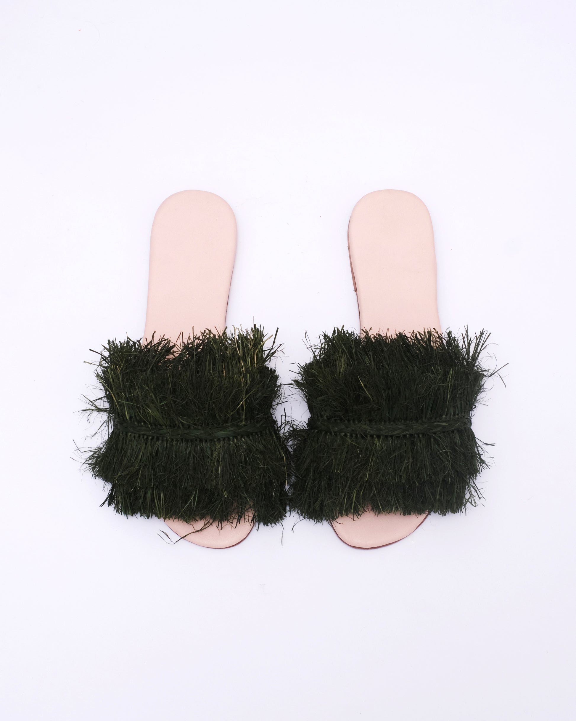 Minimalist, bold, and entirely handcrafted. These black raffia slides are made by women artisans in Morocco using generations-old weaving methods. Their rich fringe texture and natural leather insole make them both elegant and grounded.