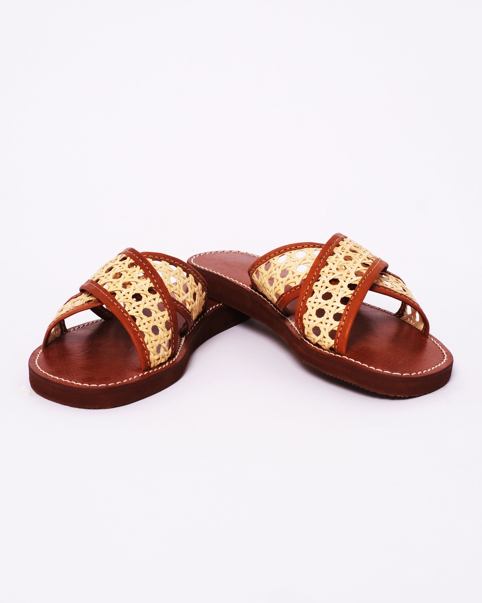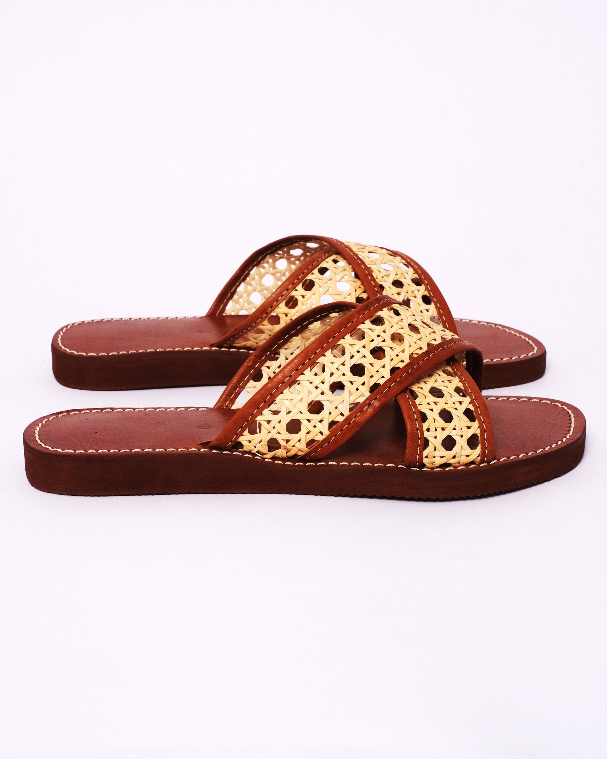Women’s Leather & Cane Slides – Handmade Criss-Cross Sandals