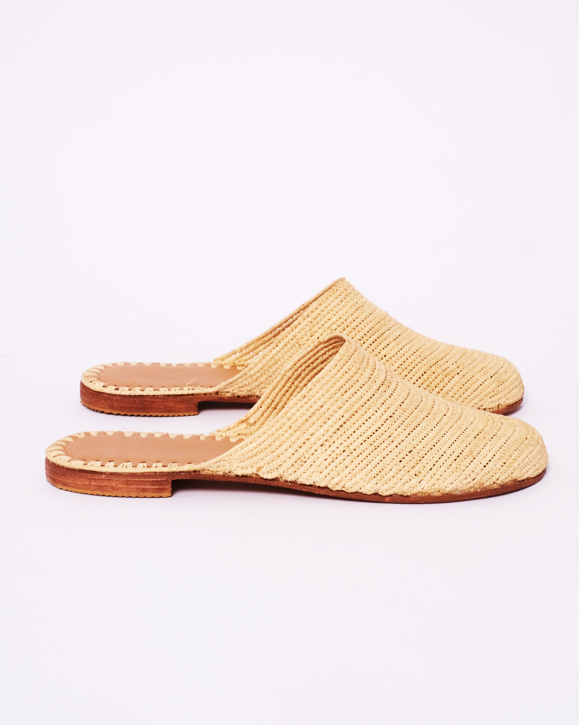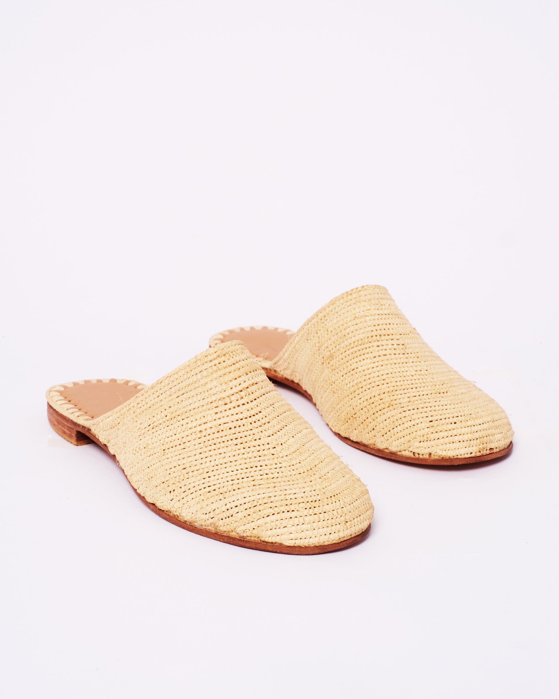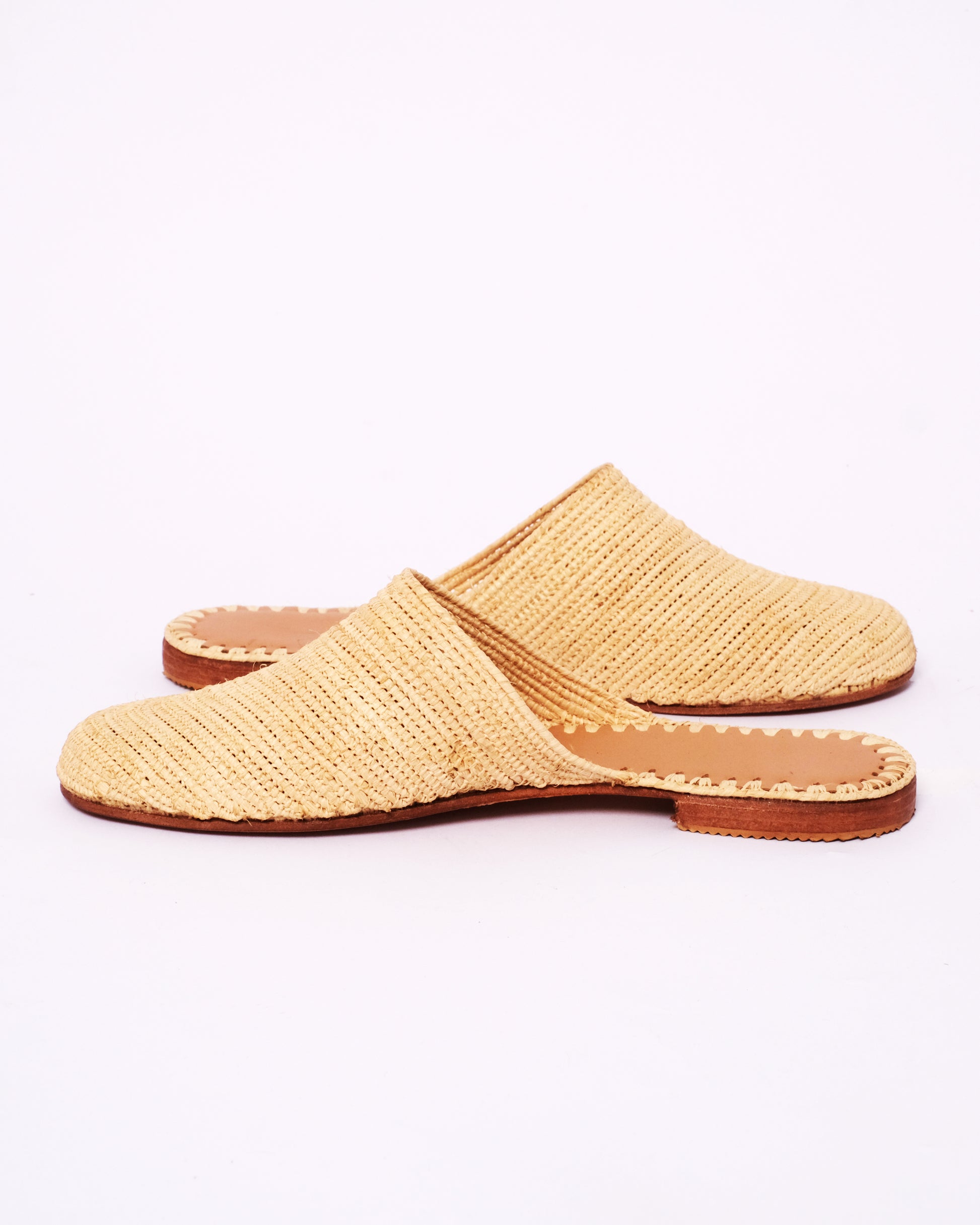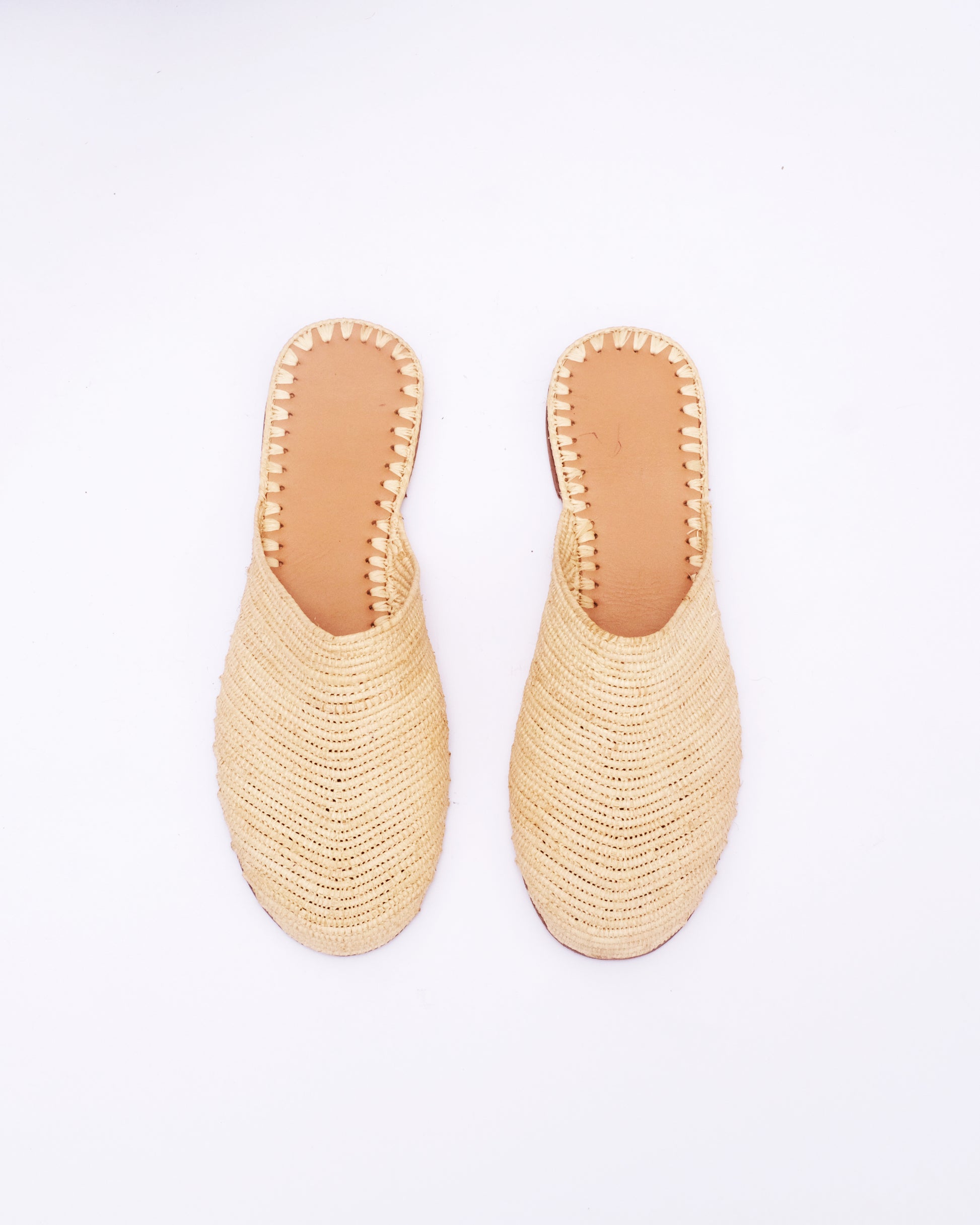Natural Raffia Mules – Handmade Moroccan Slip-On Flats for Women