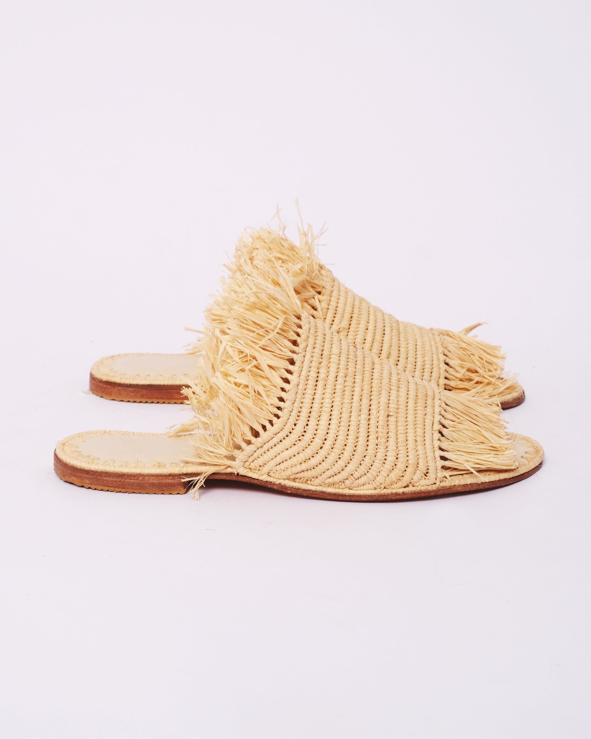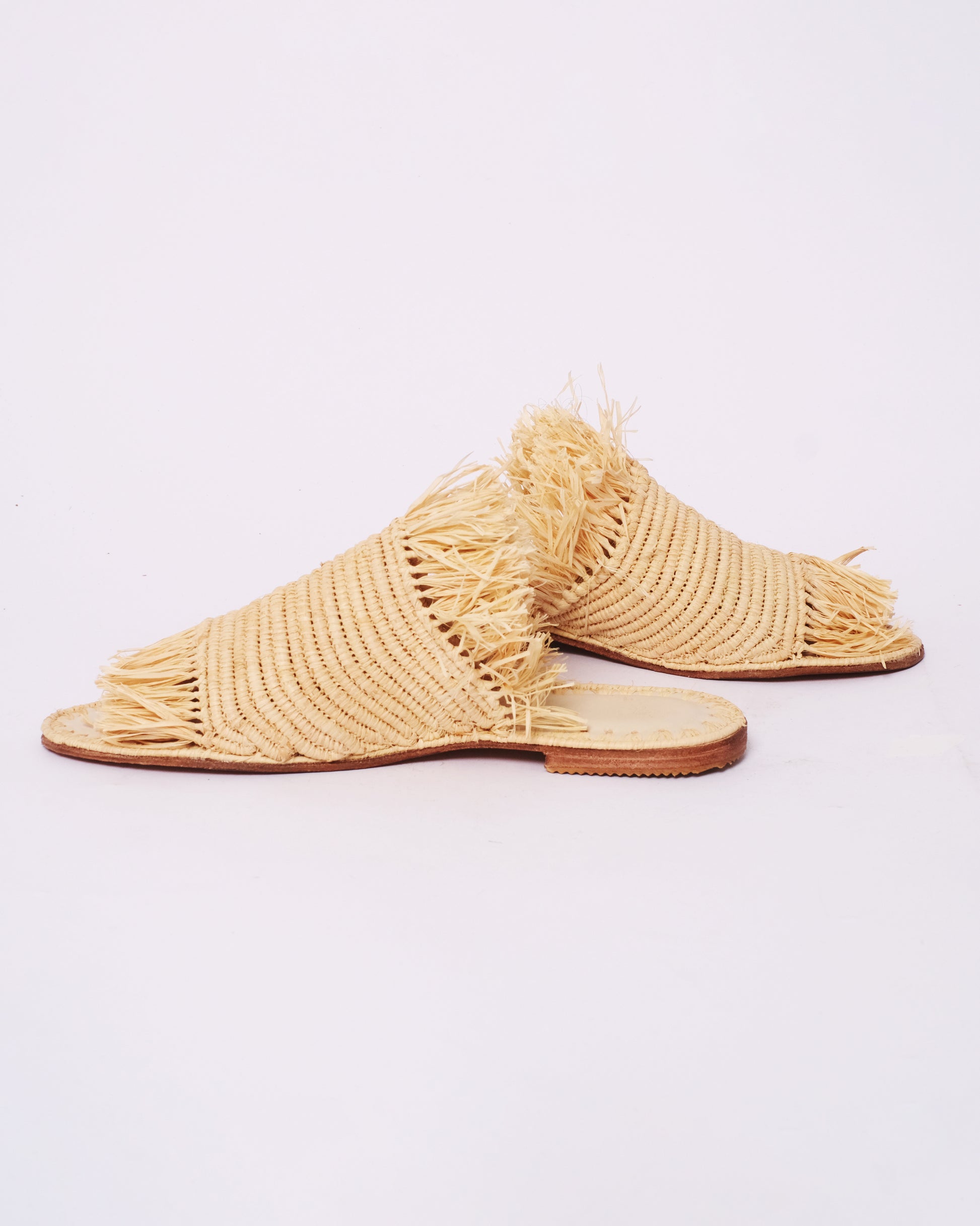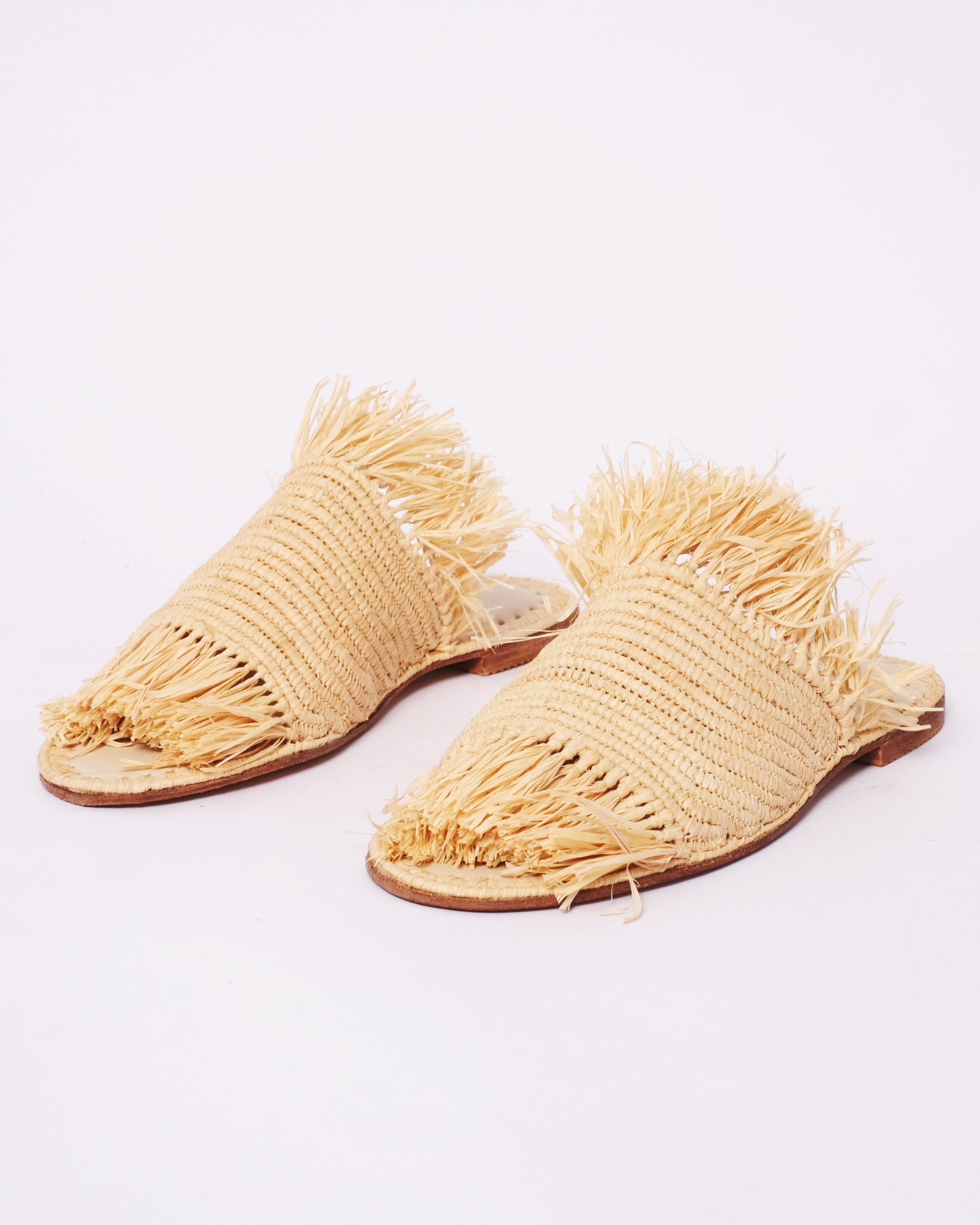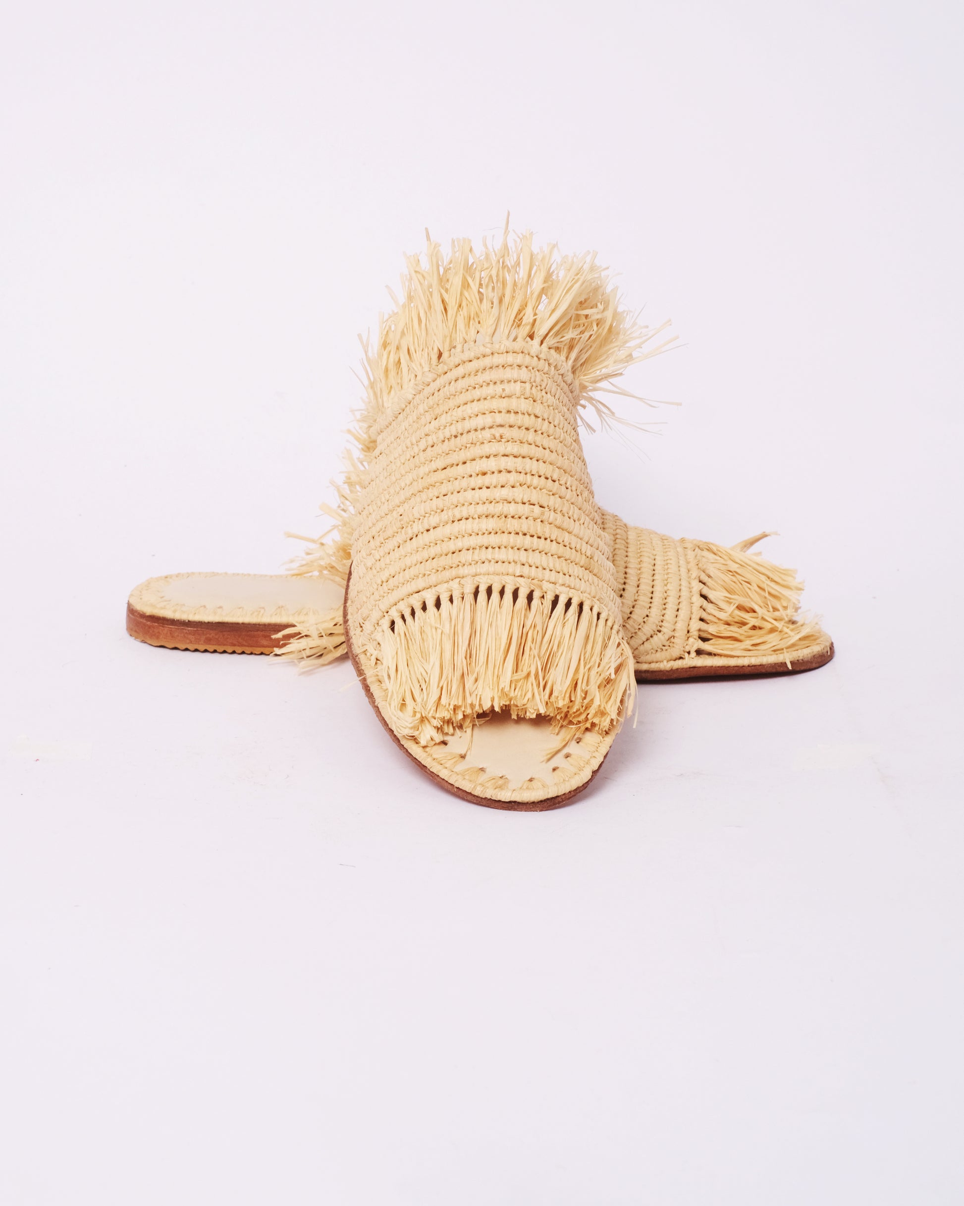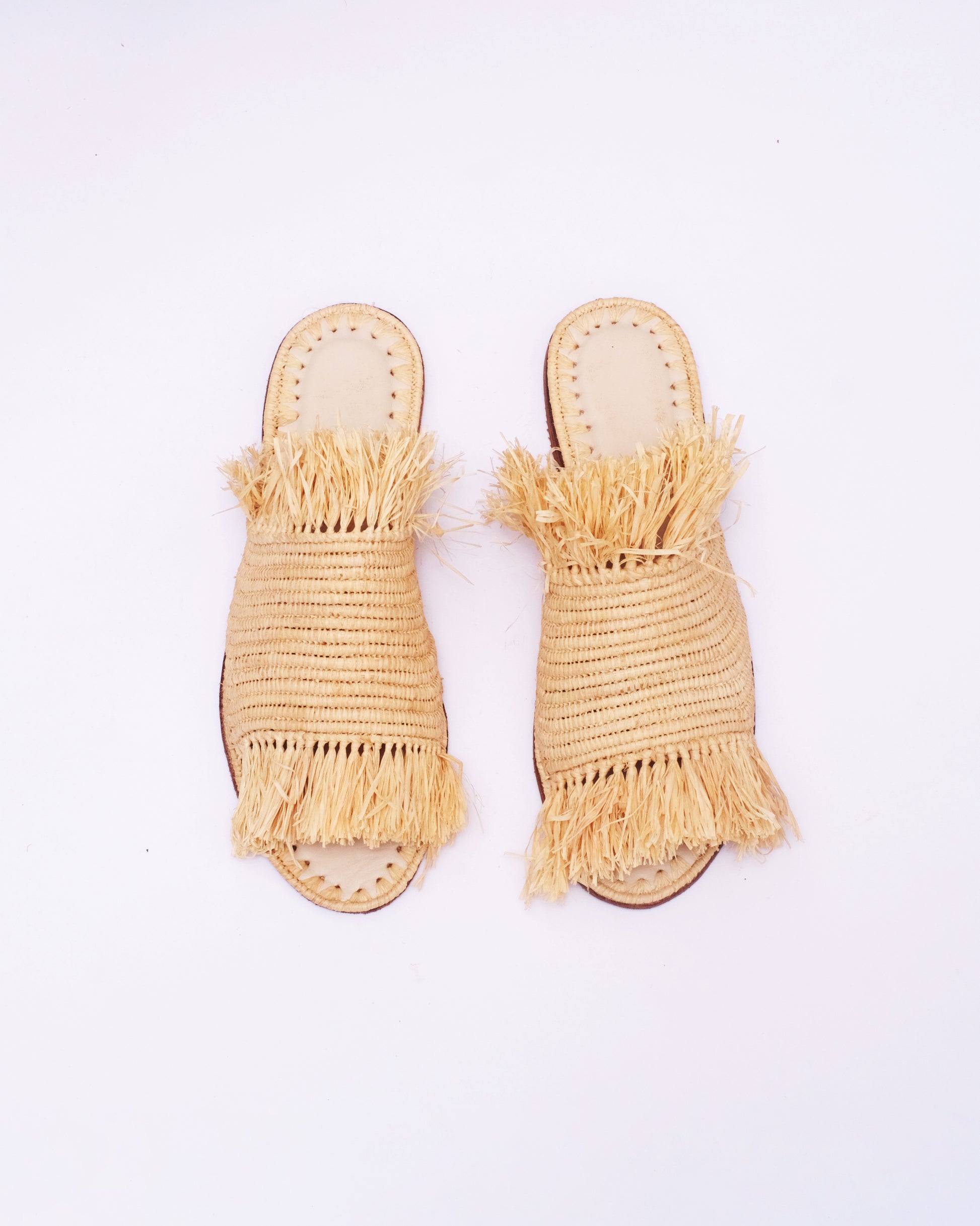 Women’s Wide Raffia Fringe Slides – Handmade in Morocco